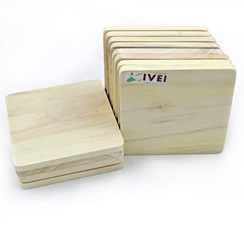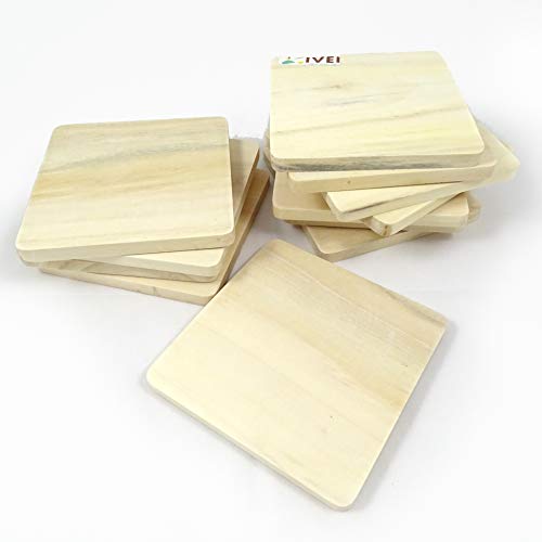 HomeKitchenDining setsCoaster SetIVEI DIY Wood Coasters Square - Plain Wooden Coasters Square Shaped Blank Cutouts for Painting Wooden Sheet Craft Decoupage Resin Art Work & Decoration - Set of 12 (3.25 in X 3.25 in)