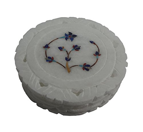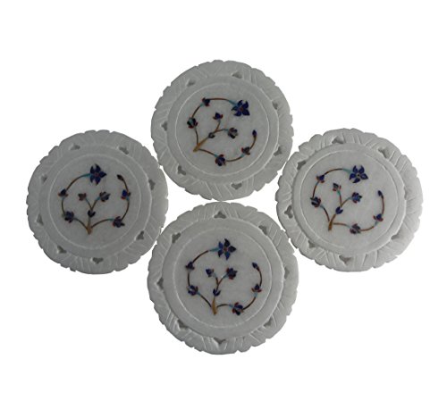Premium Range of Fine inlaid (in blue semi precious stones) Coasters (Set of 4) in Itallian marble