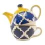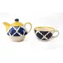 KHURJA POTTERY Ceramic Single Hand Painted Tea Pot Kettle Set of 1 Blue & Yellow400 Ml