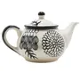KHURJA POTTERY White 500ml Ceramic Black Floral Art Handmade Perfect for Serving Herbal Tea No Strainer with Kettle