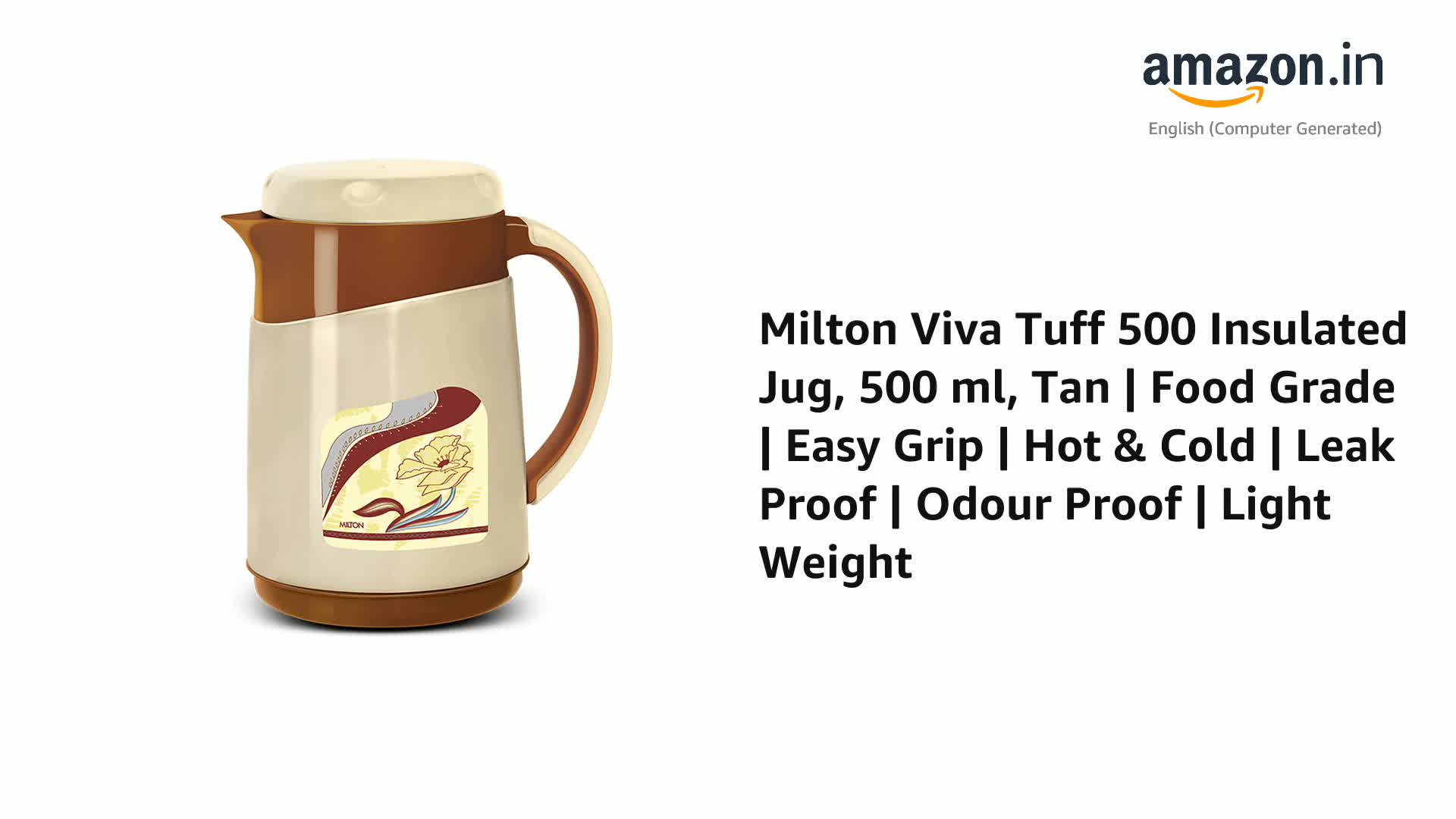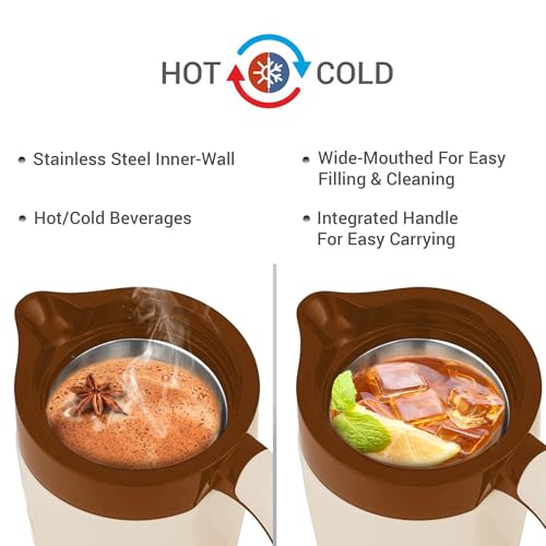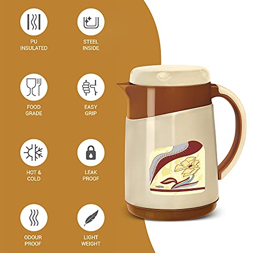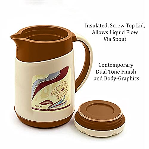 Sturdy stylish and convenient! The Milton Viva is the perfect jug to and serve water as its vacuum-insulated steel interior which makes Viva Tuff Jug more durable. It's exterior is made from food grade plastic. Insulated with Milton TUFF PUF (Polyurethane foam) that helps in keeping liquid hot or cold for hours. It is tightly sealed from top to bottom making it more Hygienic. Serve your guest with this stylish jug. Enhance the look of your dining table with its exclusive shape and design. It is BPA free Leak proof odour proof and light weight. The perfect serving jug for any special occasions or household like birthday or anniversary parties holiday picnic. It has integrated handle for easy carrying. Leave the lid open for some time before pouring any liquid into it. Pre-condition Jug with hot water if using for HOT beverage and cold water if using for COLD. Fill the Jug upto the brim this ensures maximum heat retention. Ideal for serving water tea coffee water hot beverages juices shakes and soup.