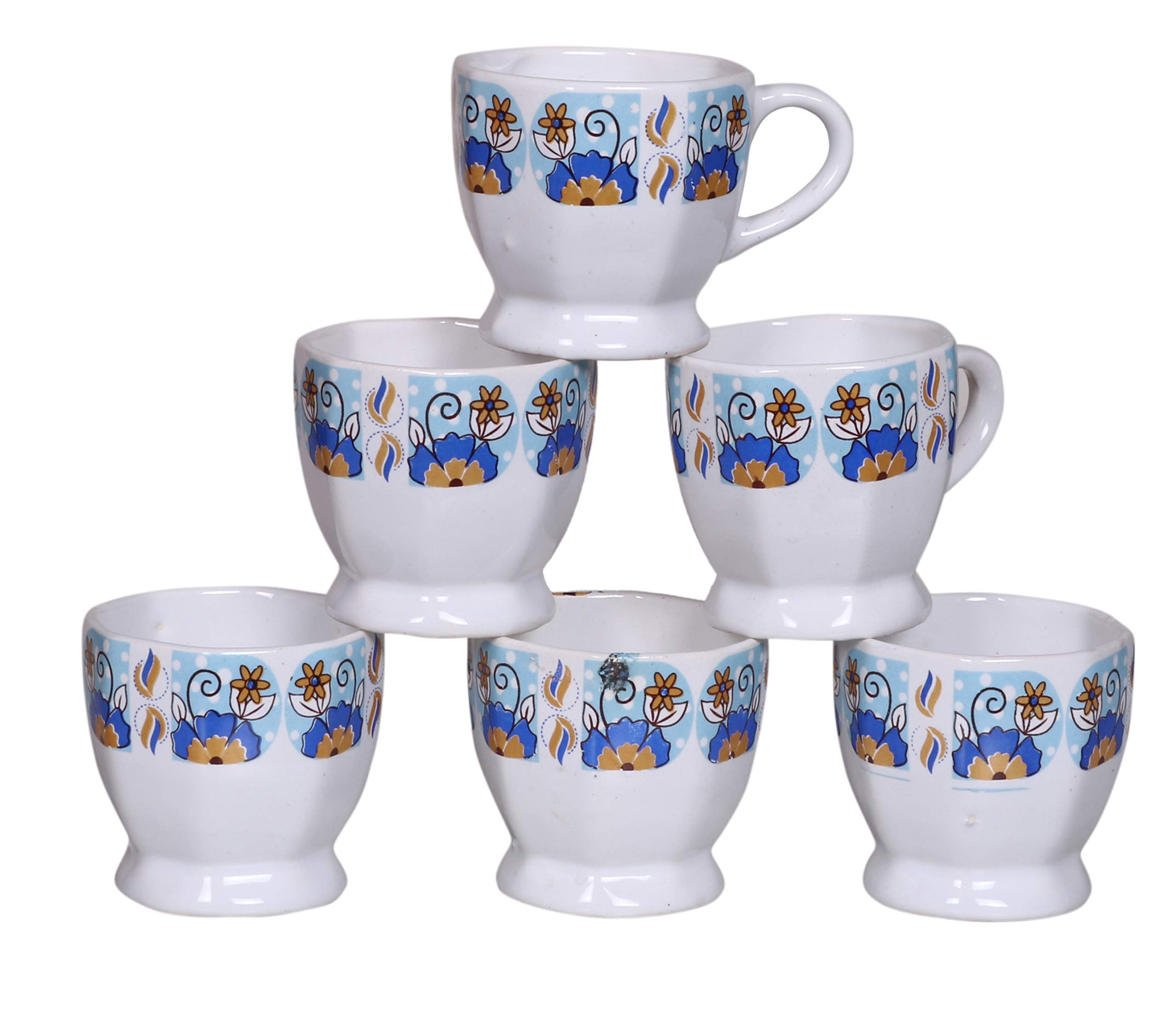 KHURJA POTTERY Ceramic Coffee Mugs Tea Cup Latest Upper Flower Design Microwave Safe Cup with Handle Ideal Best Gift for Kids Girls Boys Friends Anniversary Birthday (Set of 6 Capacity -125 ml)