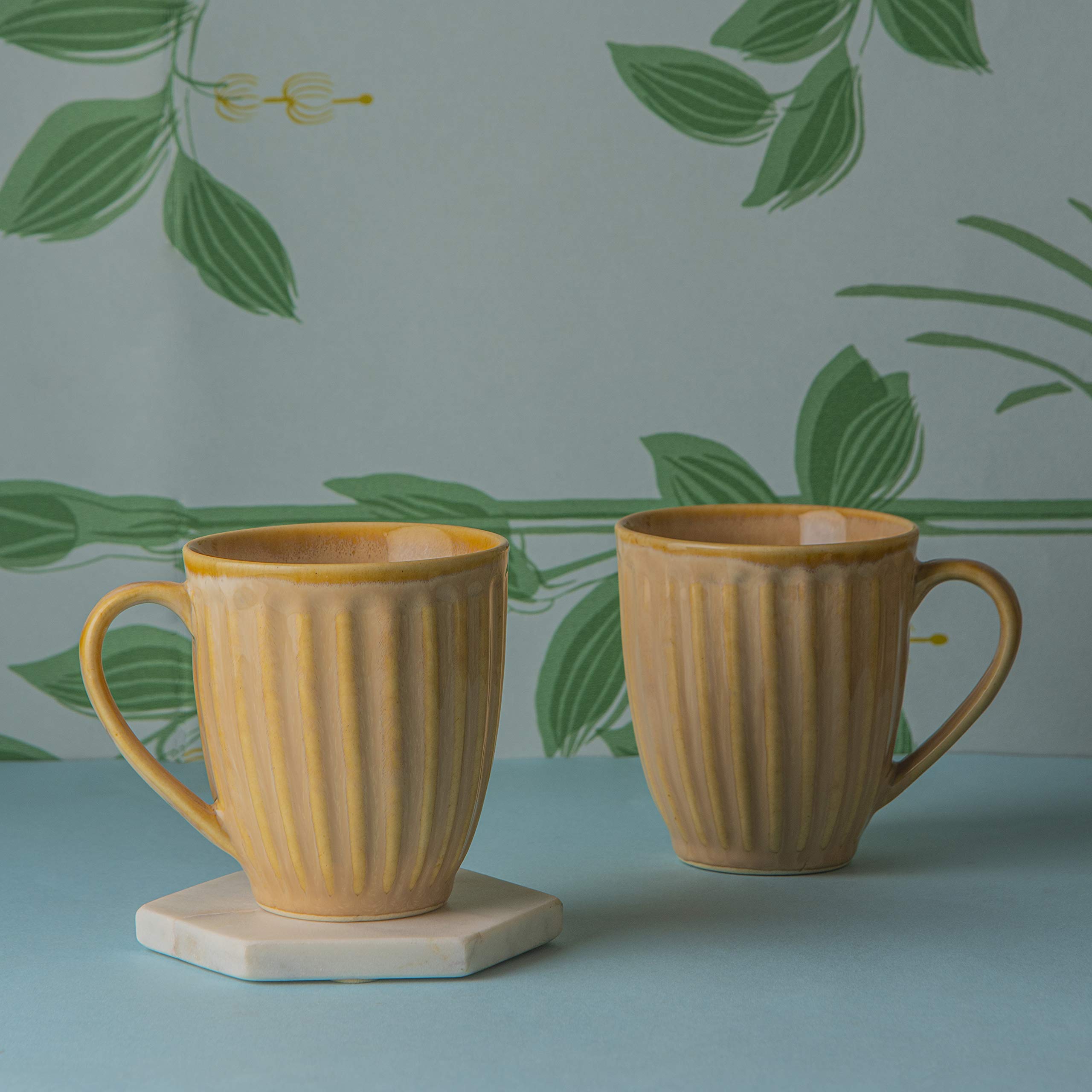 KHURJA POTTERY Ceramic Handcrafted Salmon Coffee Glazed Studio Pottery Tea/Coffee Mug Set of 2 (350 ML Microwave & Dishwasher Safe)