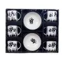 KHURJA POTTERY Ceramic Stylish Coffee Mugs Tea Cup for Kids Girls Boys Black-White Color Floral Print Tea Cups Coffee Mugs Set of 6 with 2 Snack Bowl for Home Kitchen Office - 350 ml