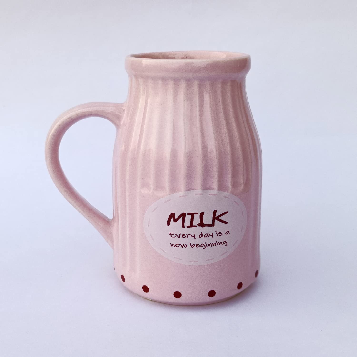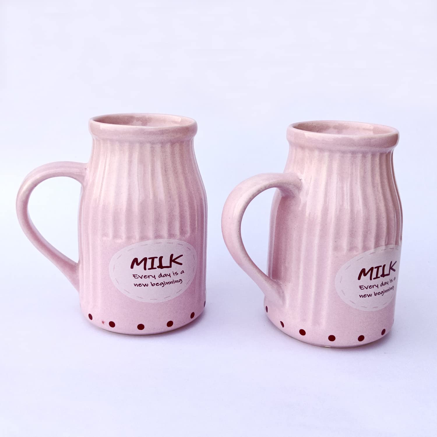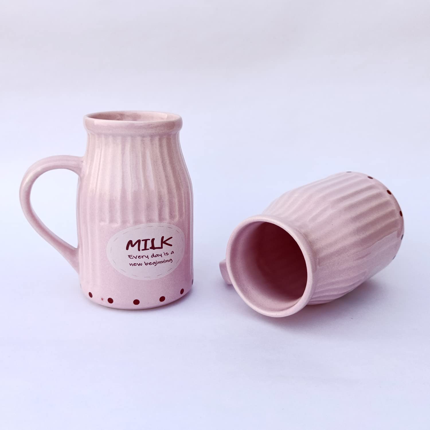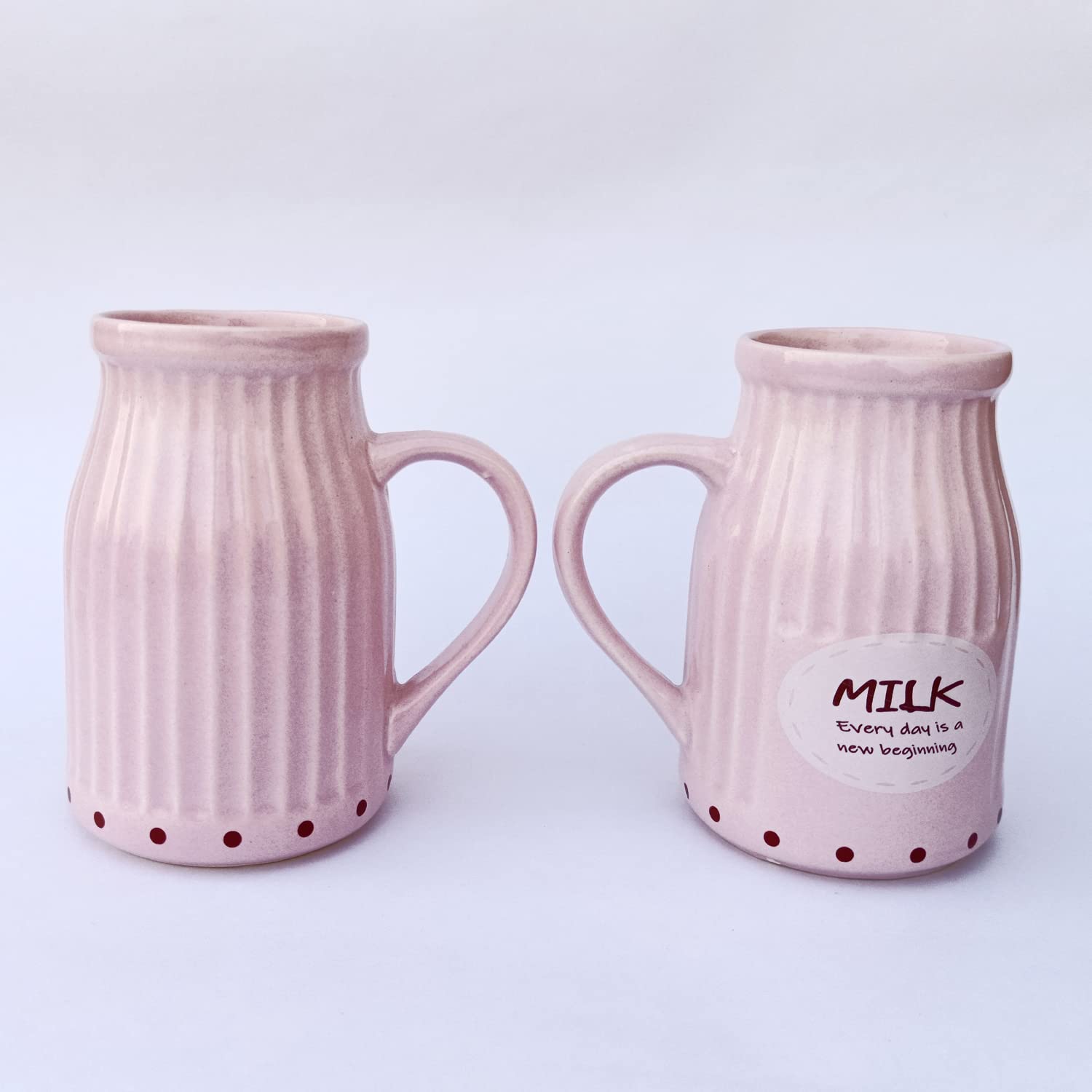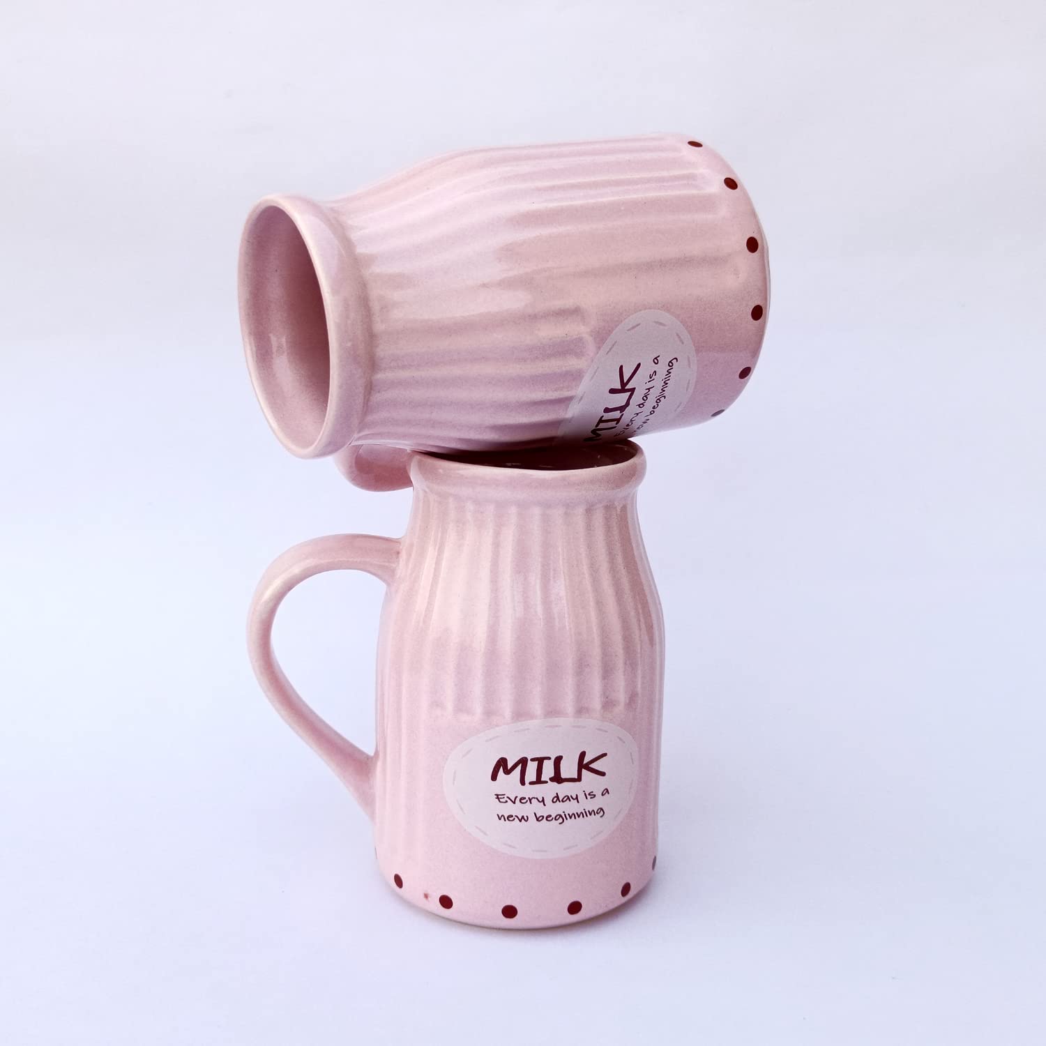 KHURJA POTTERY Coffee Milk Tea Juice Flask Can Tall Mugs Cups Set of 2 Studio Pottery Ceramic (Pink 425ml) |Milk Mugs| Cappuccino | Espresso | Set of 2