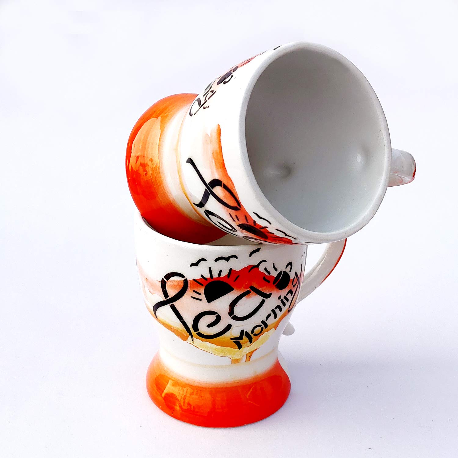 • PACKAGE CONTENTS : 2 Ceramic Mugs ; DIMENSIONS : Diameter 8 cm Height - 9.5 cm ; Volume - 220 ml each ; Weight : 210 gm each.
