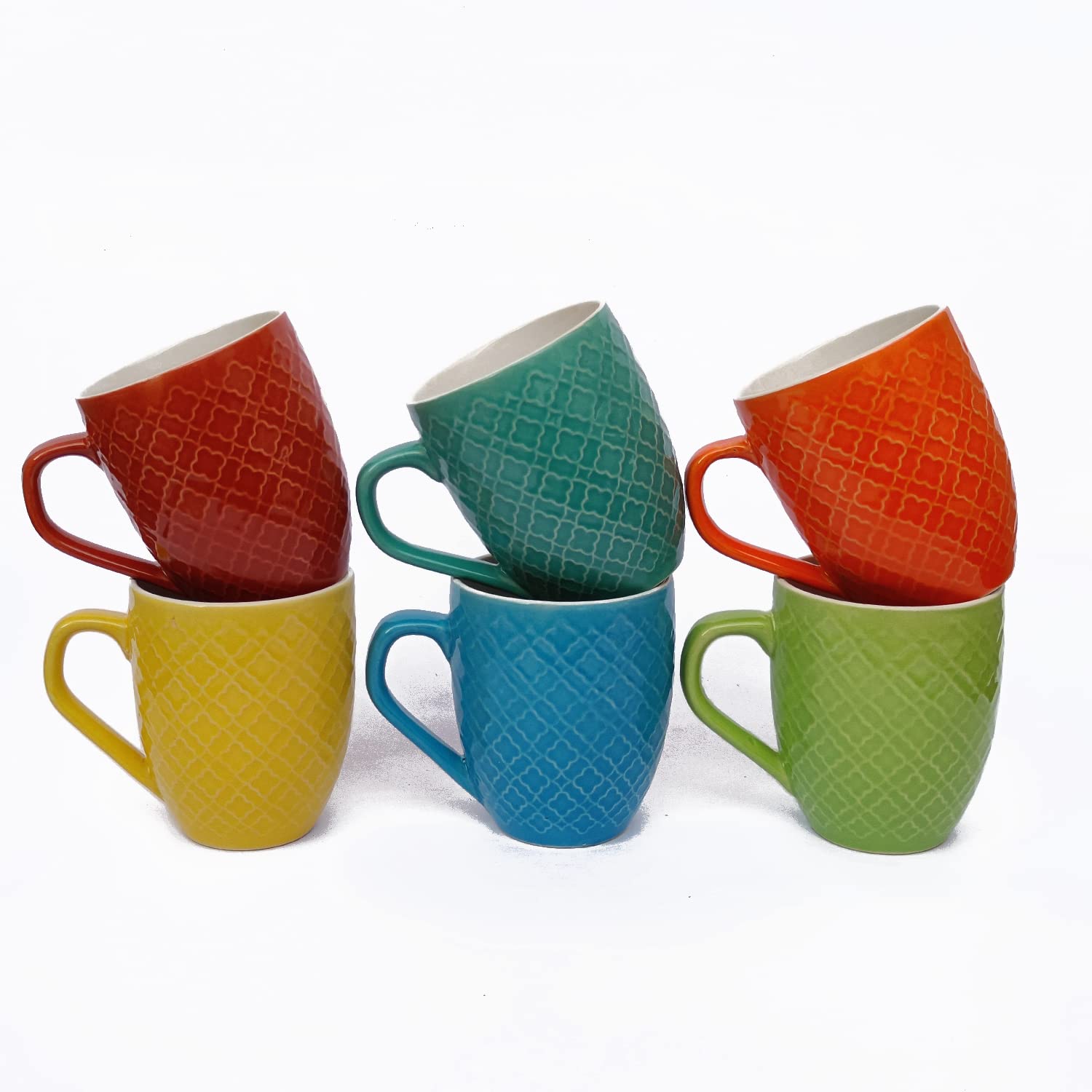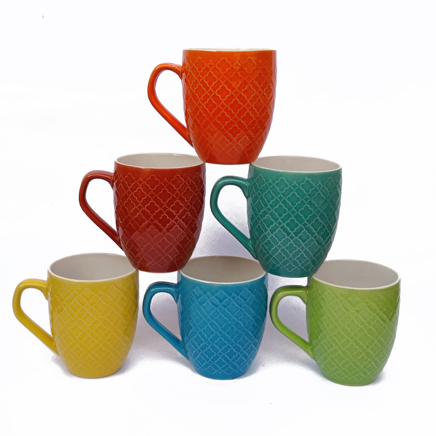 • PACKAGE CONTENTS : 6 Ceramic Mugs ; DIMENSIONS : Diameter 7.5 cm Height - 8 cm ; Volume - 225 ml each ; Weight : 195 gm each Mug.