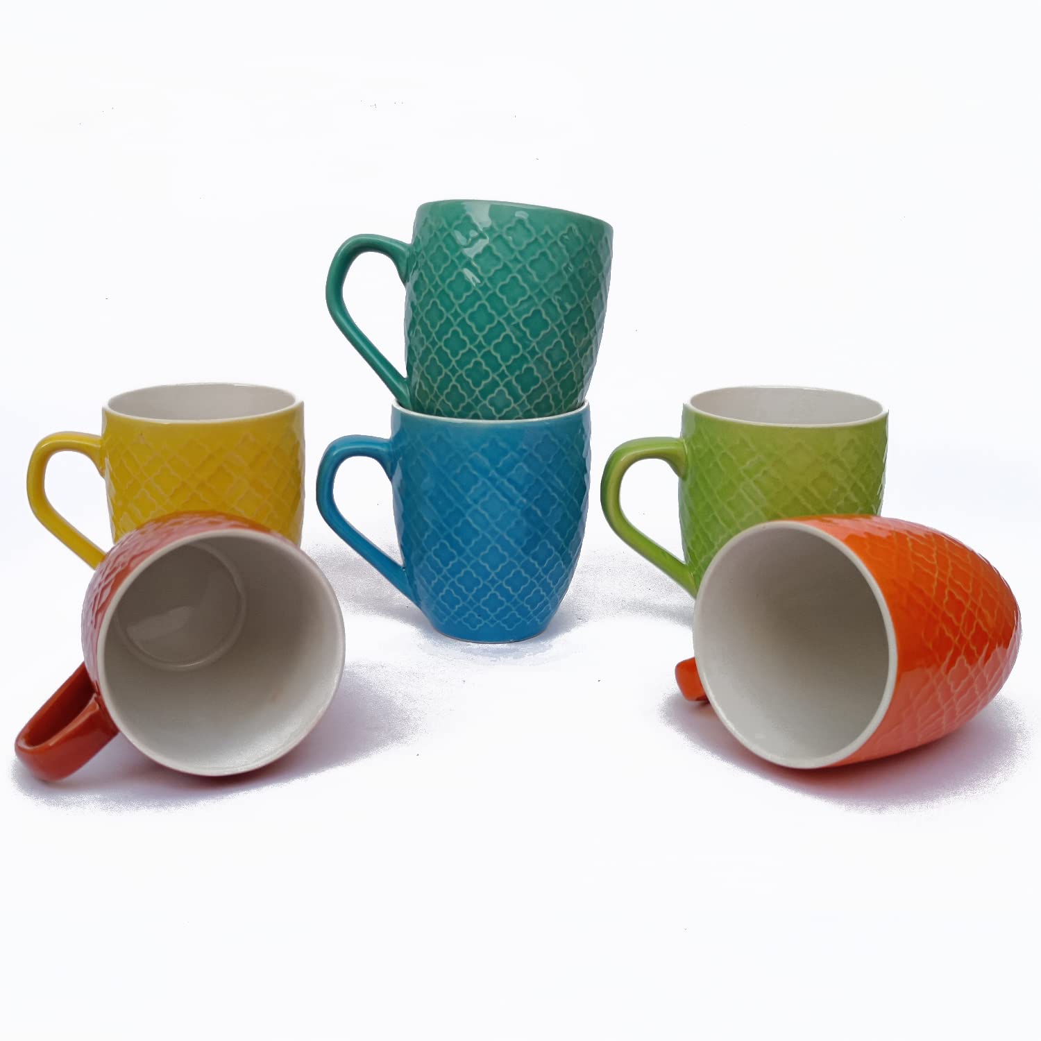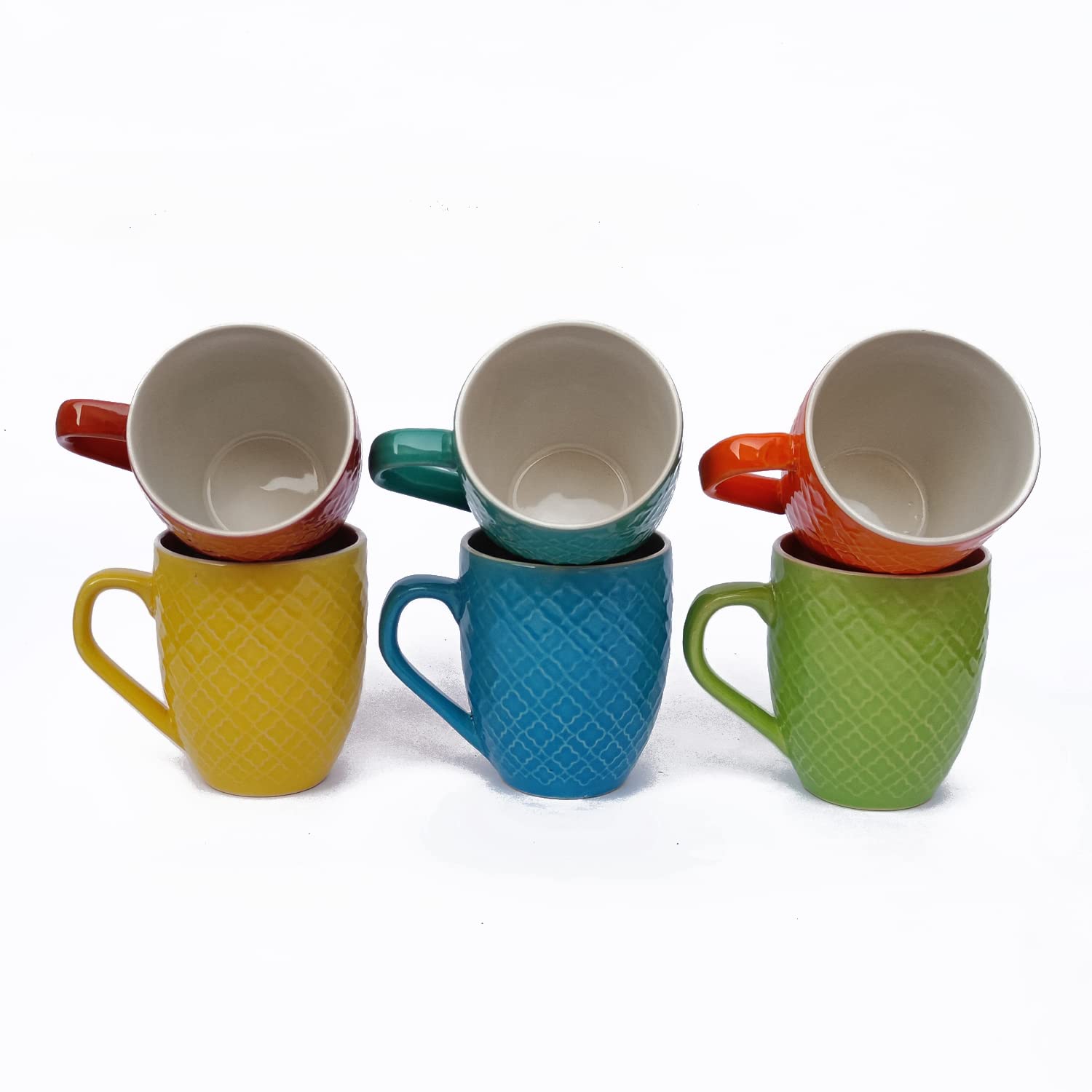 KHURJA POTTERY Coffee Tea Mugs Cups Set of 6 Studio Pottery Ceramic (6 Multicolour 225 ml Each Microwave & Dishwasher Safe) | Hand Glazed & Handmade | Perfect for Gifting