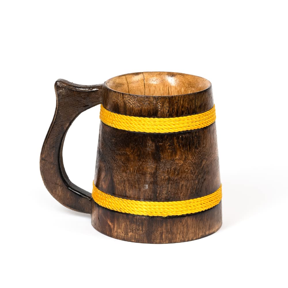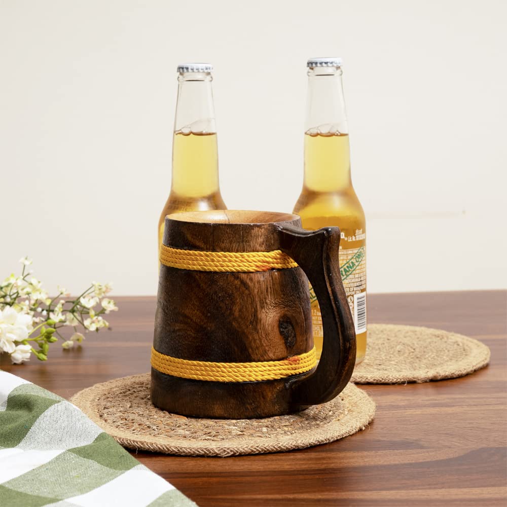 SAHARANPUR HANDICRAFTS Handcrafted Mango Wood Beer Mug | Eco-Friendly Antique Handmade Multipurpose Mug for Home Decor/Gift - Brown (Set of 1) (4.5x6 inches)