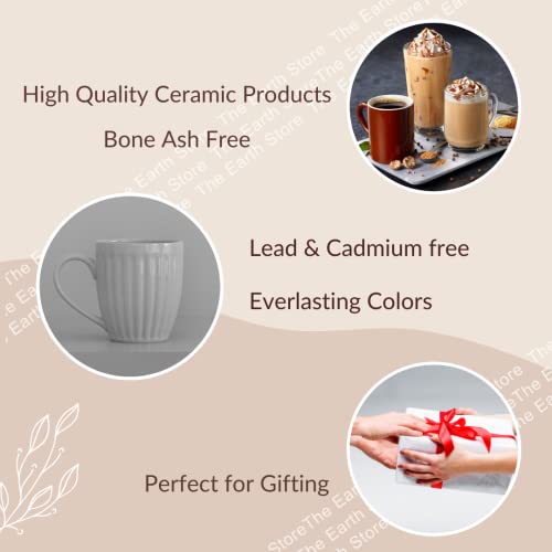 Enhance your tea or coffee experience with these unique styled and good quality mugs with your family or friends. Featuring an attractive and stylish design milk mug from the house of The Earth. These milk mugs are best for serving tea coffee milk hot chocolate green tea black tea black coffee Kawa Milkshake Chocolate milk Lassi and other hot beverages. These milk mugs will be a wonderful addition to your home.These handcrafted crockery items are crafted by the best artisans in the pottery of Khurja Uttar Pradesh India keeping in mind to present you with the unique design for your kitchen and dining.DesignThe Handle is designed in a way to give you a perfect grip while holding your beverage so you can enjoy your drink with your partner. Milk mug set is extremely durable and will last for a long time even with regular use.Benefits of Ceramic MaterialCeramic is generally considered among the healthiest materials used throughout the home from cozy warm mugs to tiled flooring.Hygienic: Your favorite beverage is not in contact with any metal surface.Easy to Clean: You can use most scrubbers on ceramic dishes and even burned on food can easily be removed after a little soak in warm water.Microwave & Dishwasher Safe: Each mug is crafted to hold up well when used in the microwave or dishwasher. No matter the temperature hot or cold the designs will not fade or peel after continued use.A Perfect Gift For AnyoneGive the gift of the perfect quality handmade ceramic milk mugs to a friend or family member to make their day! Whether Its for a house warming wedding birthday or holiday event these mugs are made for a great gift that will surely spark a smile on anyone's face.