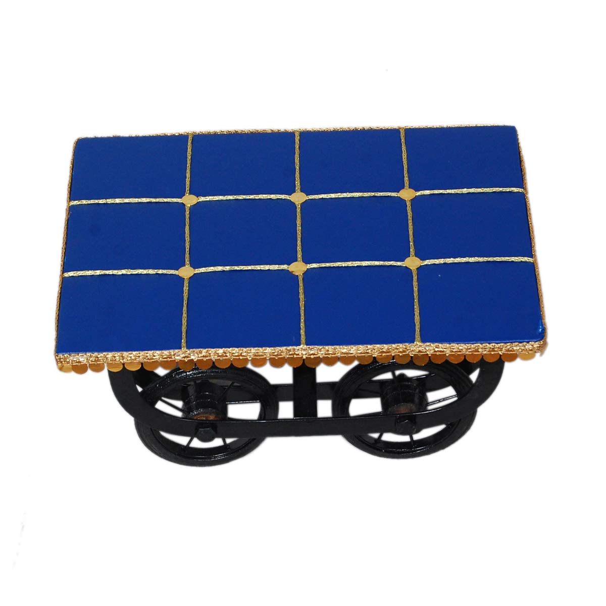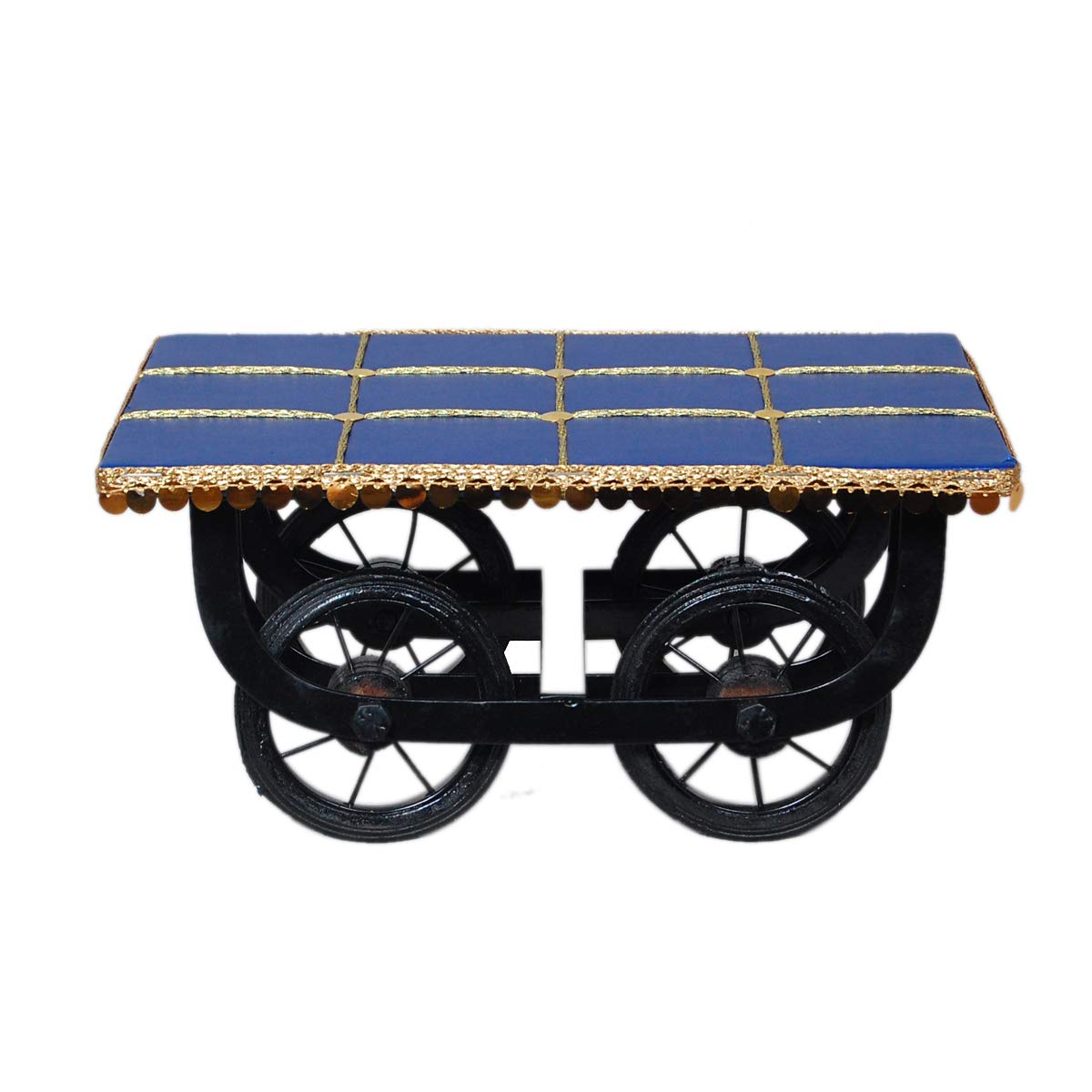 Wooden tray with blue qushan serving tary Platters redaa Desi Look of Thela with Four Wheels