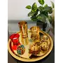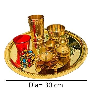 BRASS CRAFTS Brass Thaali Katori Glass Set Thaali Pooja Plate Dinner Plate Hammered Pattern Thali Diameter: 30CM Glass Katori Made in India
