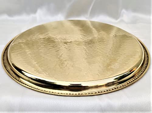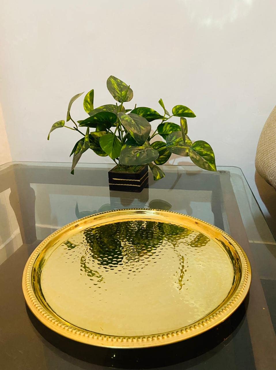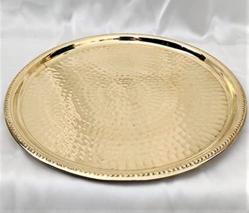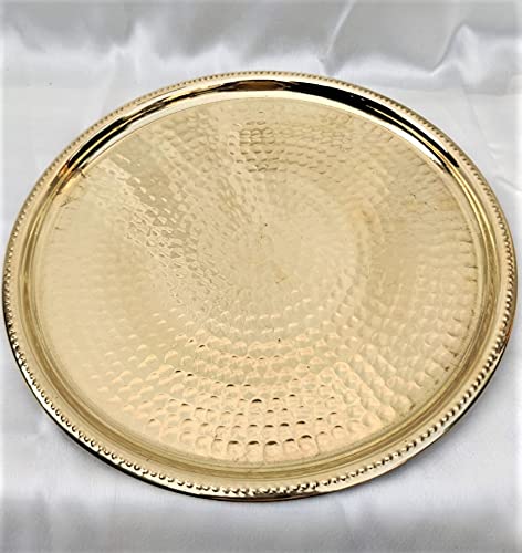 BRASS CRAFTS Brass Thaali Pooja Plate Dinner Plate Hammered Pattern Thali Diameter: 30CM Made in India