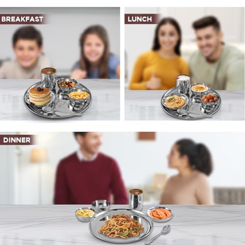 1 Spoon 2 Katoris / Vati 1 Rajbhog Dinner Plate 31 cm 1 Glass 1 Halwa Plate