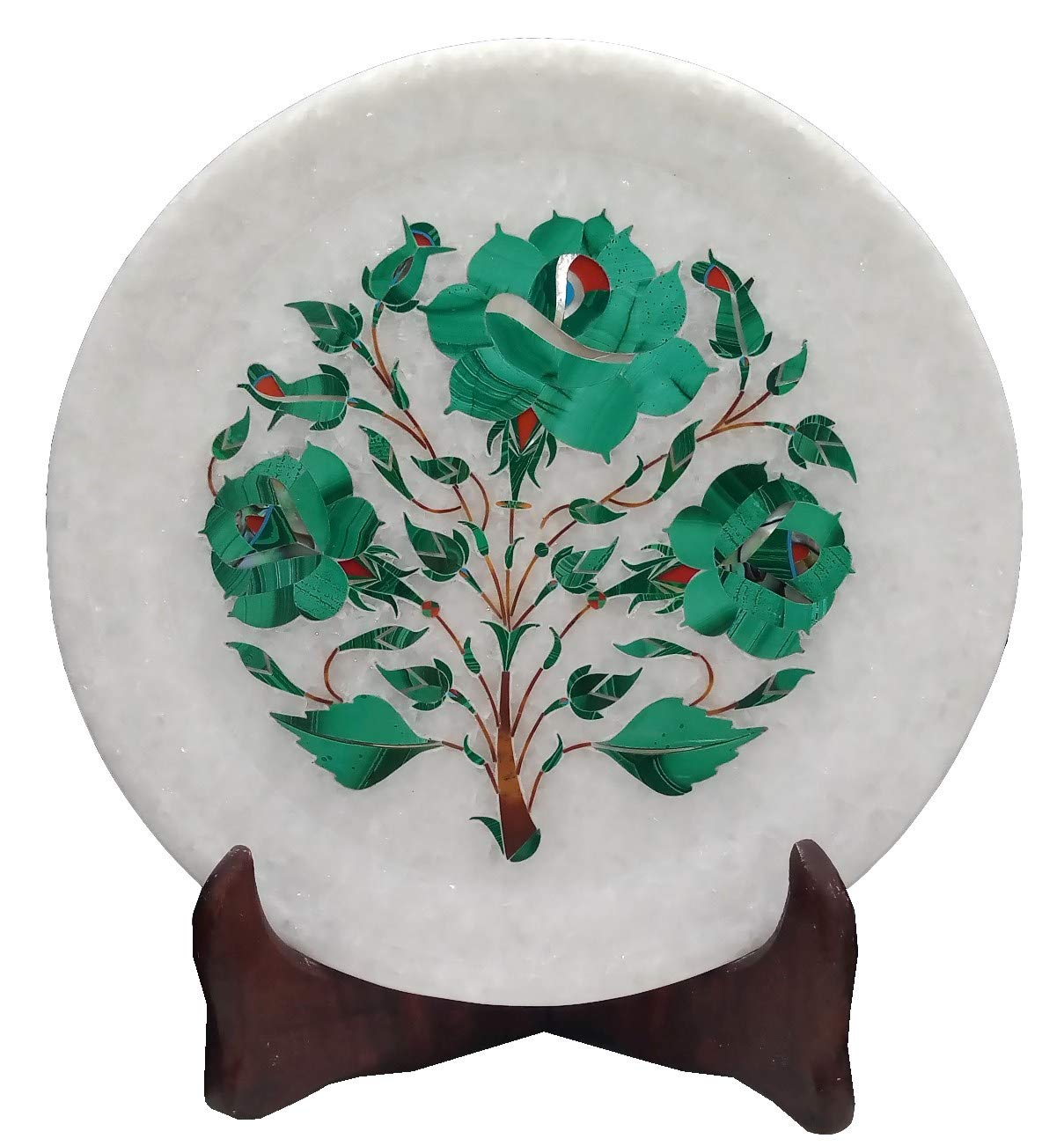 MARBLE INLAY ART AGRA - PACCHIKARI Handcrafted Plate Fully Handmade and Would Be Great Piece of Art for your Home Decoration. We Will Send You Display Stand Also. So It can Be Used Decorative Piece As well. The Exclusive marble Plate is translucent with the light so you can place the light on the back and see Magical view. We will Send you paper with Description and Meaning of the stone. To maintain this art piece simply wash Soap and water clean it with cotton cloth and apply white wax for shine. The stones inlaid into the beautiful Plate are as follows- Green -------- Malachite. Orange ------- Carnelian. Light Blue ---- Turquoise. Brown ------ Jasper. Colorful Shiny ----- Sea Shell. White - - Mother of Pearl. It is an art piece which will be a beauty & the conversation piece at home. We are himself manufacture of this product so we do custom design and bulk order also.