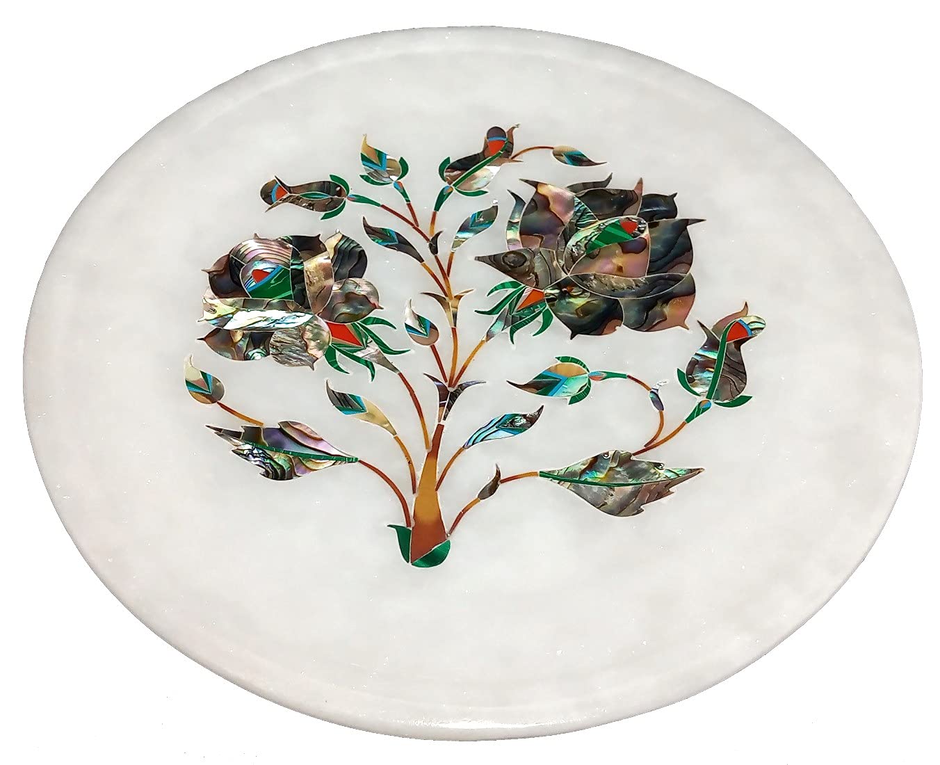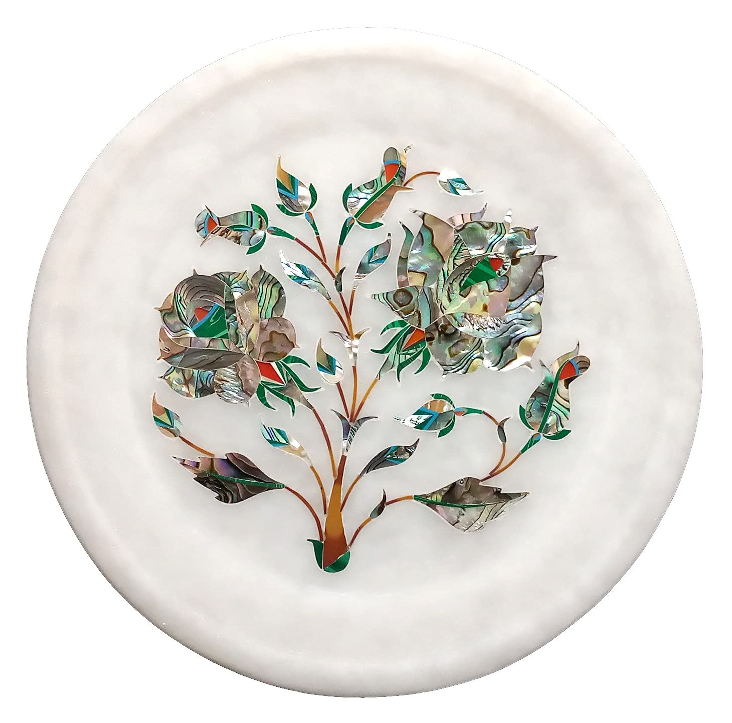 • MARBLE INLAY ART AGRA - PACCHIKARI Handcrafted White Marble Plate Perfect for Office Home and Hotel Decoration.