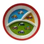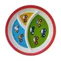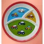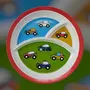 SAHARANPUR HANDICRAFTS Melamine Kids Plate | Round 3 Section 10'' Multicolor Plate with Prints for Boys and Girl | Food Serving Plate with Partition (Car Gangster Round Shape)