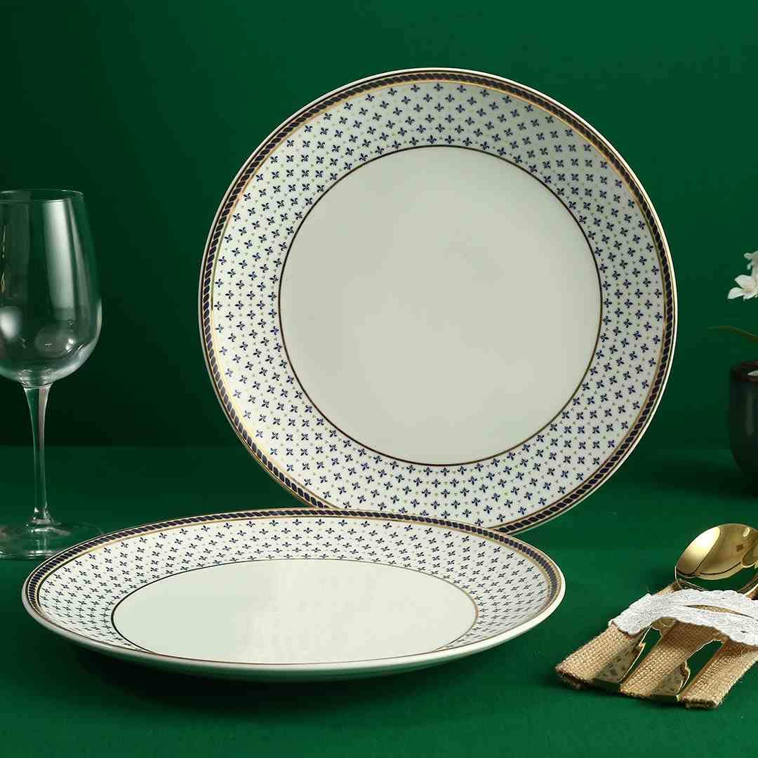 Inspired from the pristine shores of Sicilia Wonderchef brings their premium fine bone china dinnerware range - Sicilia. Like the clear water & luxurious lifestyle of the southern Italian coast this range is an ode to your opulent lifestyle. The Sicilia Royal Blue collection is the perfect balance of traditional design thought with a contemporary outlook. This collection has rich royal blue colour with real gold accents. Each piece of this collection portrays the artisan’s eye for detailing. The touch of gold rim makes every plate a coveted piece. They undergo three stages of firing and stringent quality check to attain the finish. The colours and gold used are food safe. Match it with its complementary pieces (sold separately) to curate a lavish dinnerware set also perfect for gifting. Bring elegance to your dinner table with this classic dinner plate in a set of two that comes with a captivating print on the surface. It has been crafted from fine-quality material for extended durability to add a refined touch to your dining experience. The plates are food-grade have long-lasting designs and are also non-toxic & hygienic.