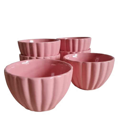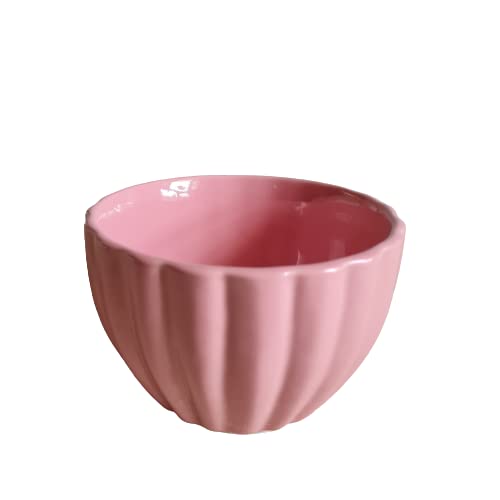 These KHURJA POTTERY ceramic round bowls are handmade and handpainted by Indian artisans. The top diameter of the bowl is 10.5cm and the height is 7cm. The capacity of each bowl is 300ml. As the bowl is handcrafted there may be a slight difference in color and finish or few pinholes may occur; however this does not change product quality in any way. These big bowls are made of ceramic and so they are non-toxic non-reactive can retain heat for a long time and do not catch the flavour or colour of the product put in them. They are also easy to clean and lasts for years. They are also dishwasher safe on the mild cycle. These big ceramic bowls are also lightweight Microwave Oven Freezer OTG safe and chip resistant and so act as bakeware too. Medium size of these ceramic serving bowls makes them perfect for multipurpose uses. The ceramic bowls are perfect to bake or serve various food dishes like soup dal rice pasta curry/gravy noodles desserts snacks sauces or chutneys. The color available is pink which makes them perfect for any setting and their stylish look also makes them a wonderful gift for your loved ones who are moving into their new home or love eating out of pretty bowls. They go perfect with a boho nordic or colorful house theme. Serve your breakfast lunch or dinner in style. The product's description and images are copyright of KHURJA POTTERY. It is a request that is not copied or altered. We promise to give you the best product and service. In case you have questions or problems with our product do not hesitate to contact our store. If you are interested to see more of our product range search "KHURJA POTTERY" in the search bar.