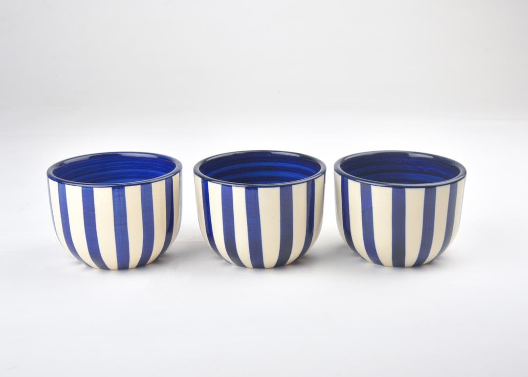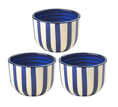KHURJA POTTERY Ceramic Multi Purpose Bowl 320Ml Set of 3 (Blue)