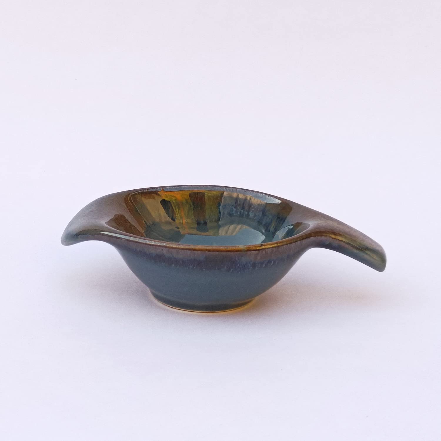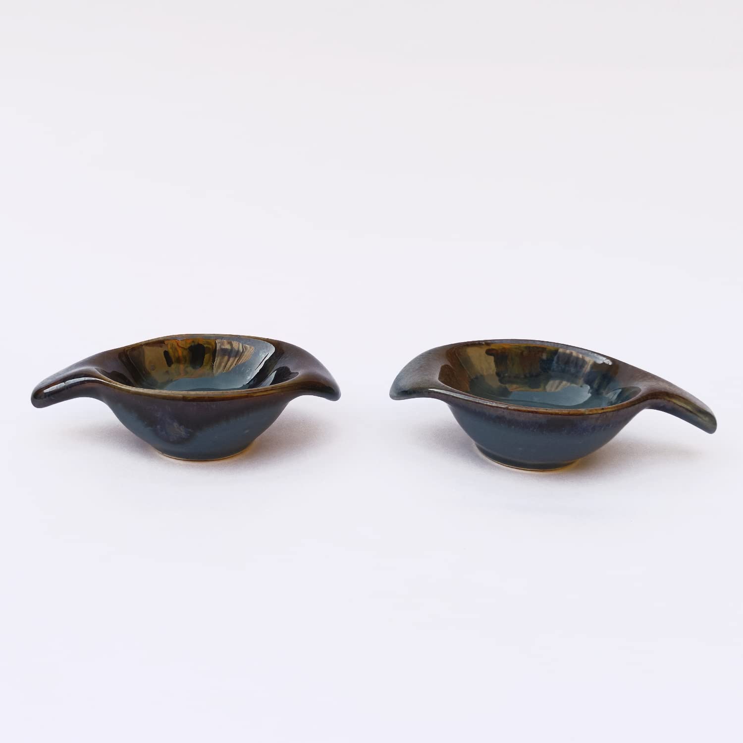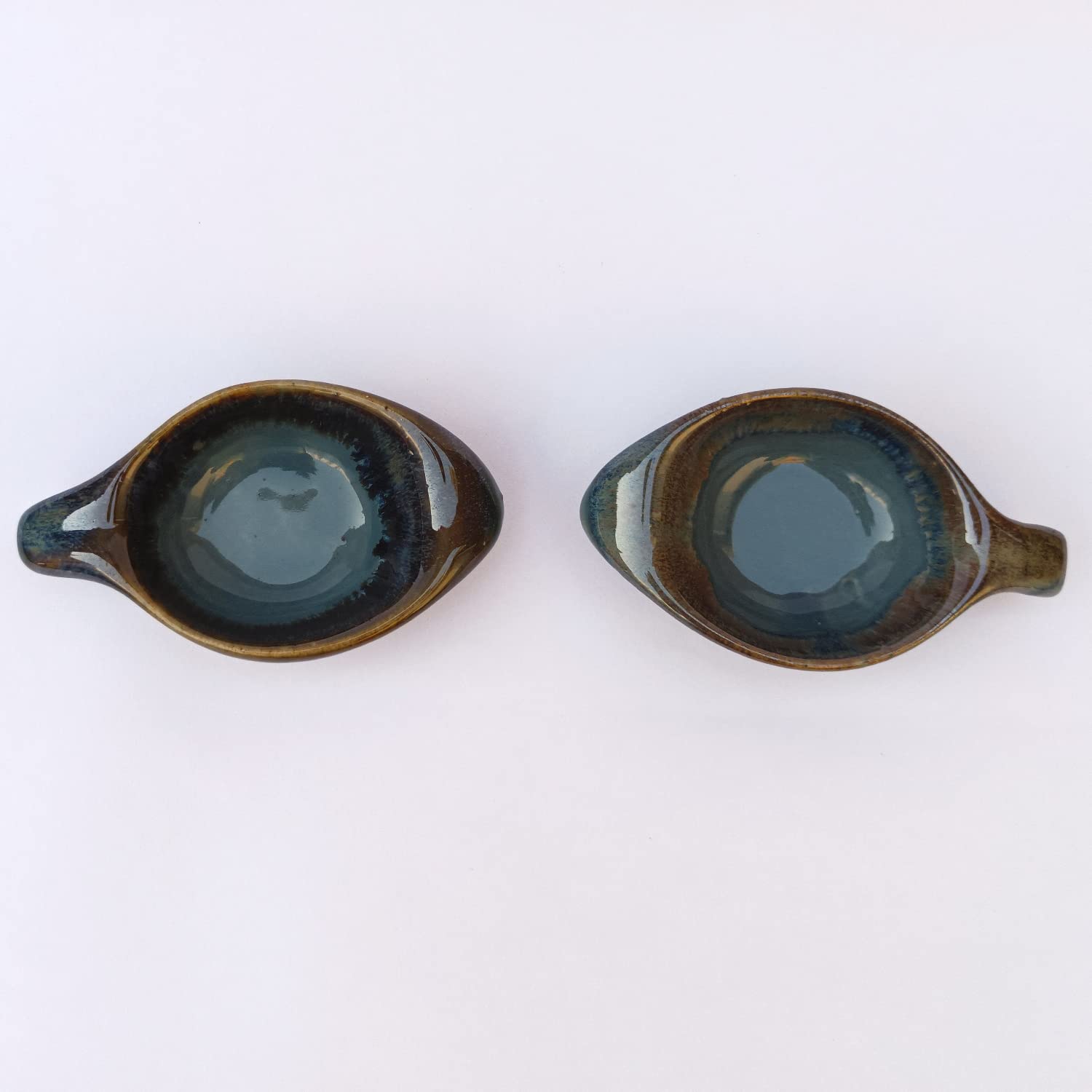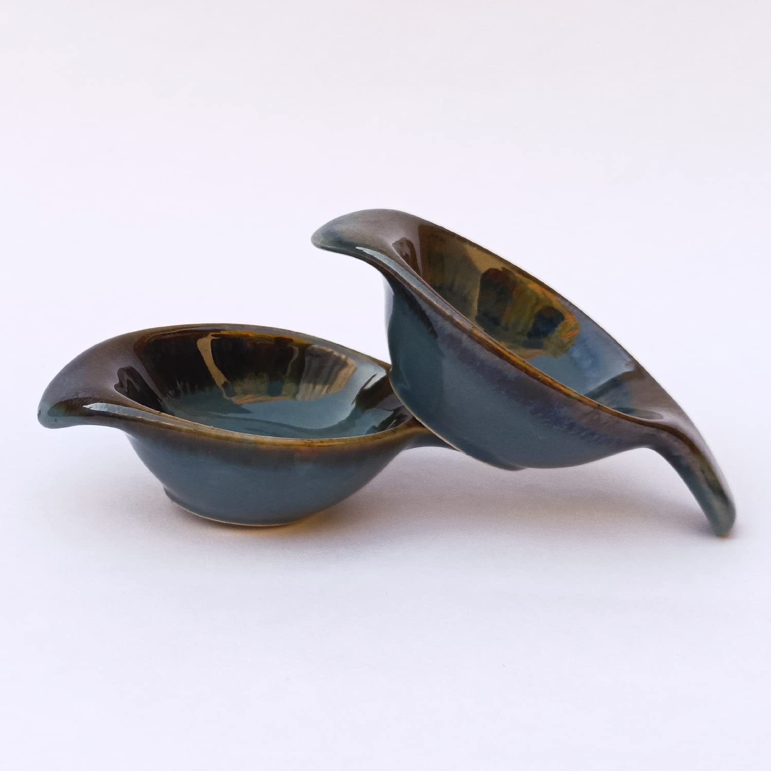 KHURJA POTTERY Chutney Sauce Pickle Aachar Ketchup Dip Serving Bowl Ceramic Hand Glazed Studio Pottery Ceramic Set (40 ML Small Set of 2 Dark Green) | Dip Bowl | Ketchup Bowls