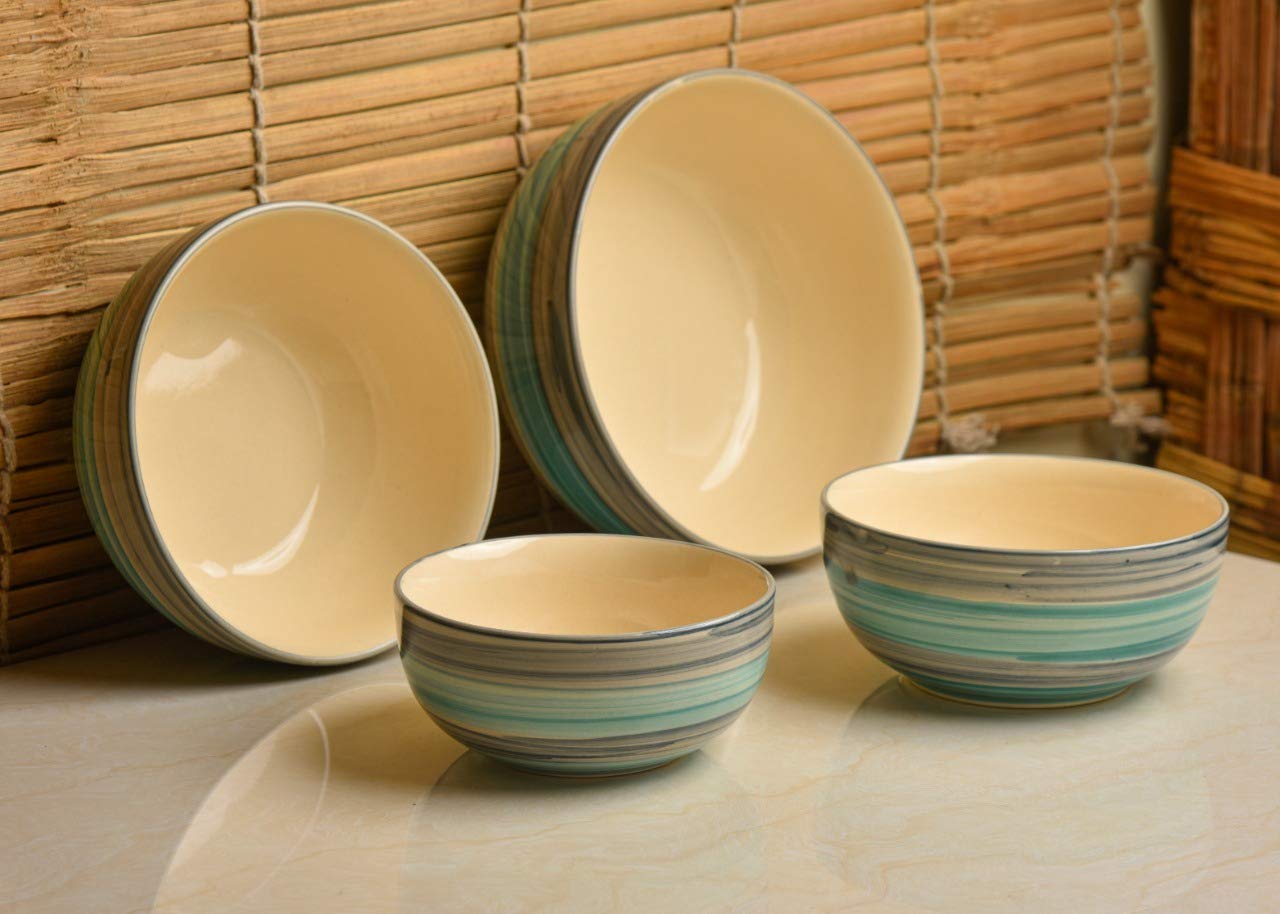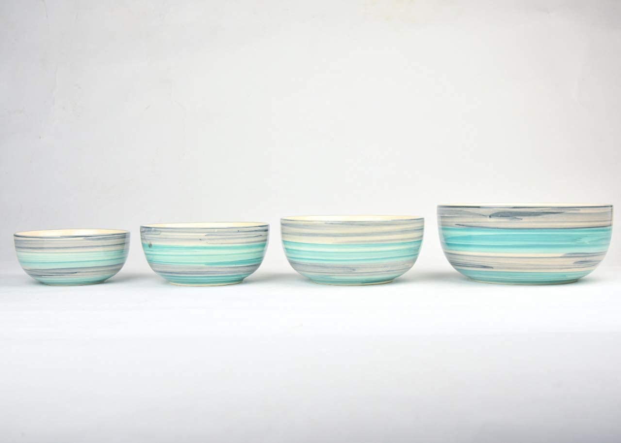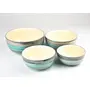 KHURJA POTTERY Sea Green Handpainted Serving/Snack/Mixing Bowl Set of 4 (1000 ML 750 ML 500 ML and 350 ML)