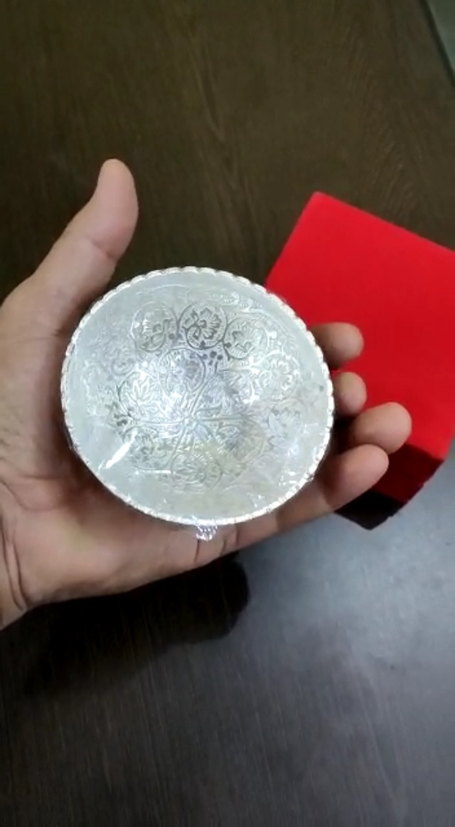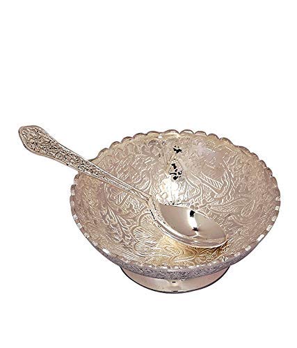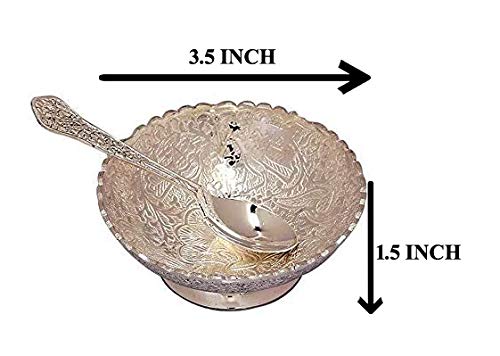 HomeKitchenServeware setsBowlRastogi Handicrafts Aluminium -Silver Plated Small Bowl Set with Spoon Size - 3.5 Inch Diameter Bowl capacity -100 ml /3.38 OZ