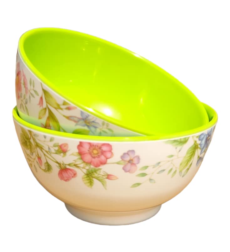 SAHARANPUR HANDICRAFTS Melamine Bowl Set | 6 Inch 650 ML 2 Tone Coloured Round Bowl Set of 2| Vegetable Bowl | Snack Bowl | Soup Bowl | Mini Serving Bowl Set of 2 (Vanessa Bowl)
