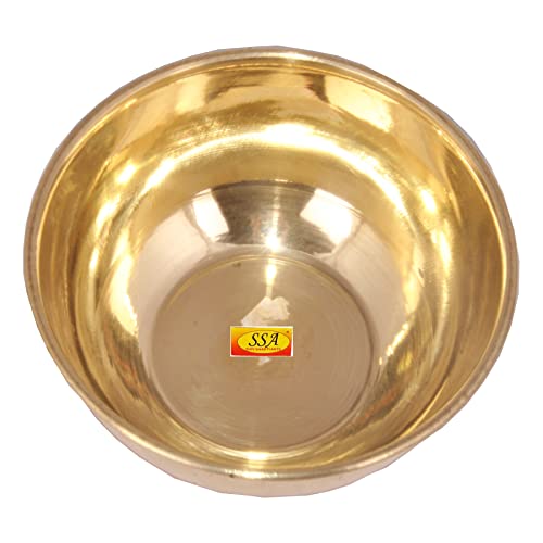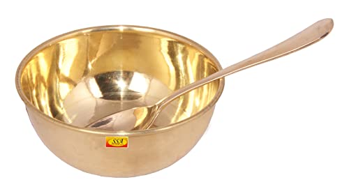 Shiv Shakti Arts® Heavy Gauge Pure Brass Pyala Bowl/Pooja Bowl/Katori Serving Bowl with Spoon Set - (Vol - 500 ML Each) Set of 1 Pcs.
