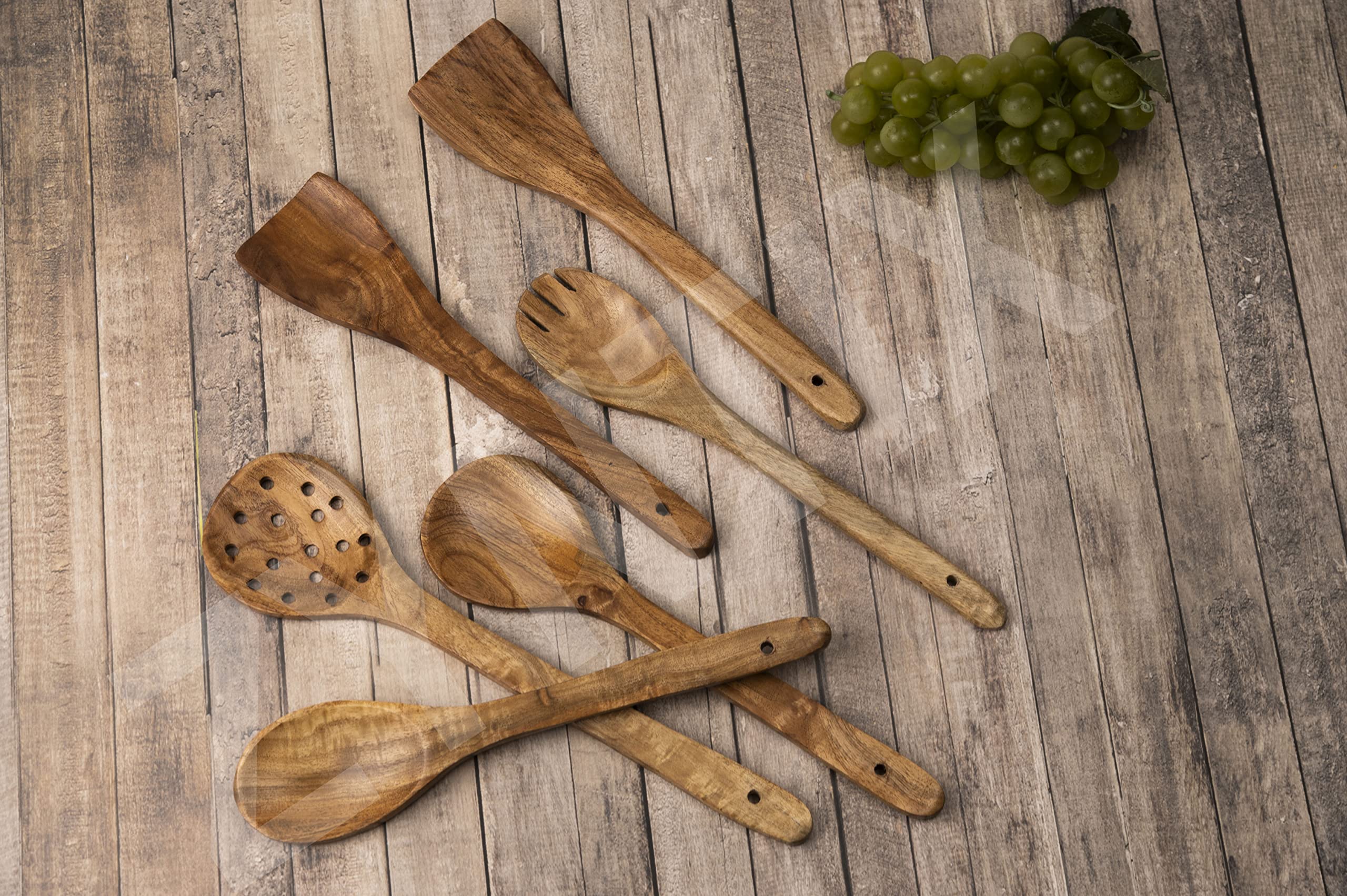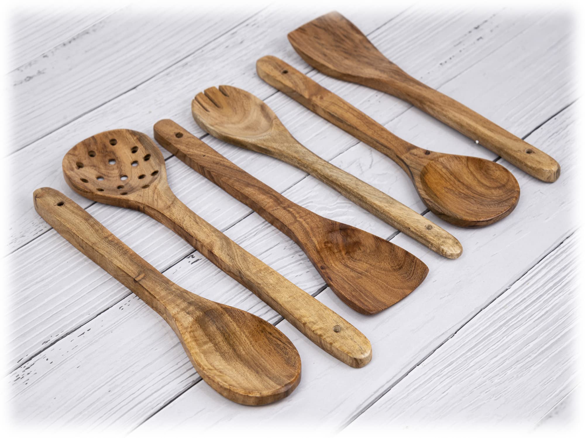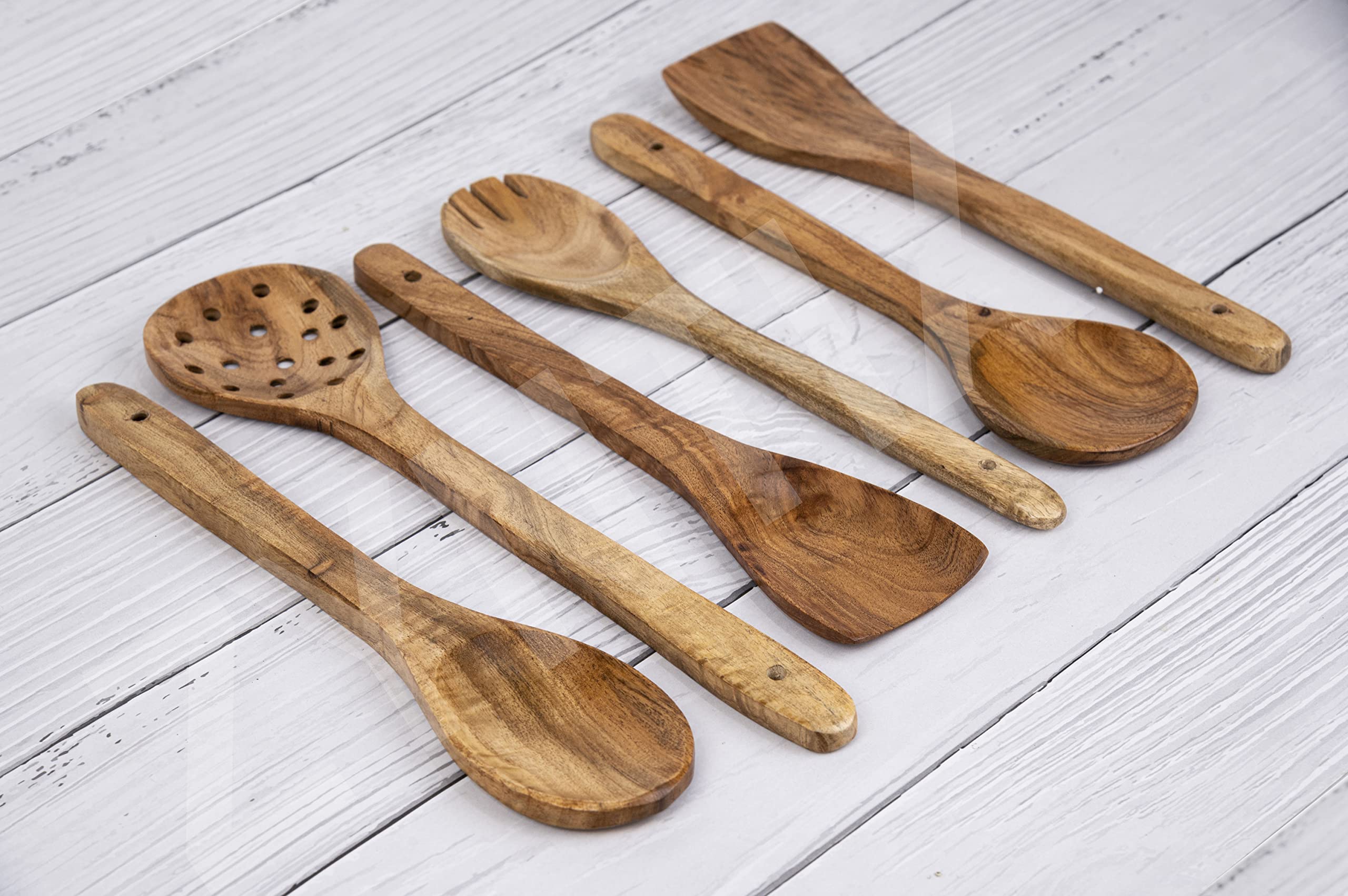 BIJNOR - METAL INLAY IN WOOD Unpolished Compact Flip/Spatula/Ladle for Cooking Dosa Wood Spoon Tools No Harmful Polish Naturally Non-Stick Wooden Spatula Wooden Spatula for Non Stick pan Neem Wood Spatula Set of 6