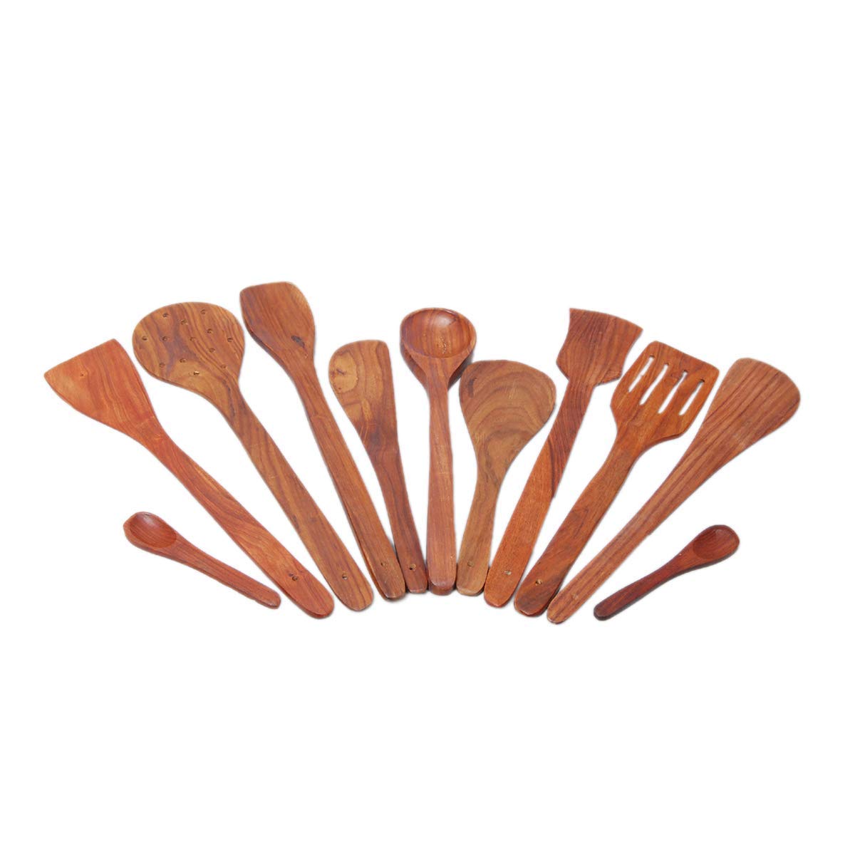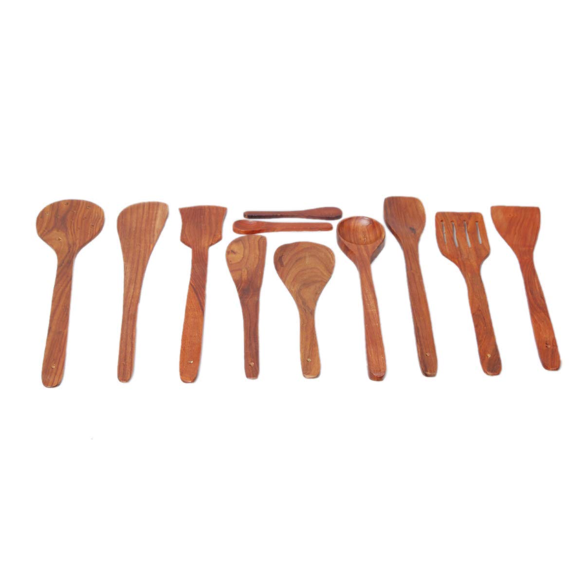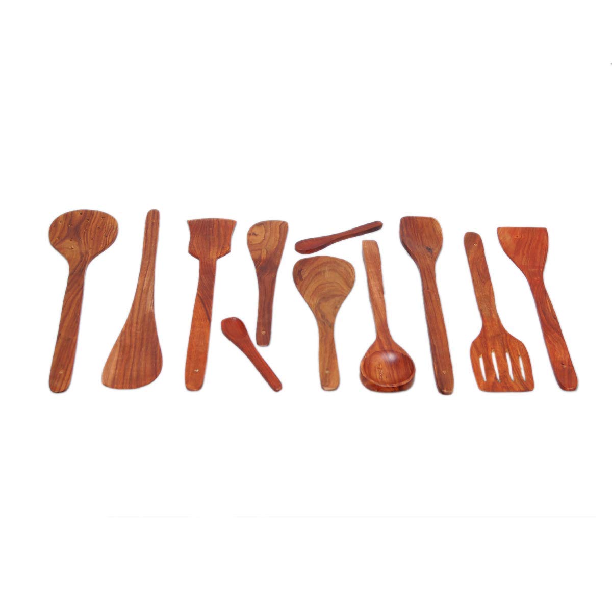 SAHARANPUR HANDICRAFTS sisam wood amazing spoon An essential set for any kitchen! Multipurpose Serving and Cooking Spoon Set for Non Stick Spoon for Cooking Baking kitchen tools Essentials Wooden Non Stick Spatulas Handmade Wooden Serving and Cooking Spoon Kitchen Utensil Set of 11 beutifui spoon