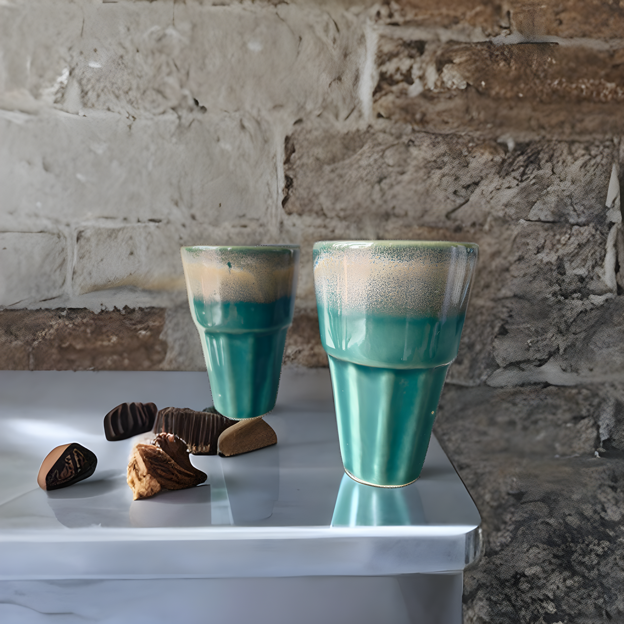 Ceramic Kitchen Teal Tea Glasses Set of 2