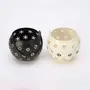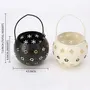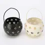 PRODUCT DESCRIPTION:Brighten & beautify your home & office right now by using this pair of hanging tealight holders made in durable rust-free metal in a spherical shape. It is available in black & white shades and showcases hand-etched floral patterns on the bodies. Imitating a lantern you can put a tealight candle inside each holder to spread a soft subtle light along with beautiful patterns on the walls. Gift this set to your loved ones on special occasions & festivals or use it to create memorable moments at home.FEATURES:Handcrafted in strong & rust-free metal this tealight holder pair is one of its own.With the ability to emit a soft light across the room through its beautifully hand-etched floral surface these hanging holders come in a spherical shape in white & black hues respectively.Both the holders come with an attached metallic hanger and space inside to put a tealight candle.The light diffused from them throws beautiful patterns on the surrounding walls.Hang this combination from the ceiling of your favourite room at home or office.It makes for a fabulous & perfect gift for festivals such as Diwali Christmas anniversary & housewarming parties or birthdays.NOTE:Please refer to the dimensions in the image.The color shape and design may vary slightly from the image as the product is completely handmade by Indian artisans which makes it unique.It is not an electric ceiling lamp.CARE INSTRUCTIONS: Use only a soft dry or a mildly wet cloth to wipe any dirt.