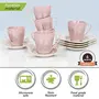 Porcelain Tea Cup with Saucer Set - 80 ML Pink , 12 Pieces for Home , Office , Gift