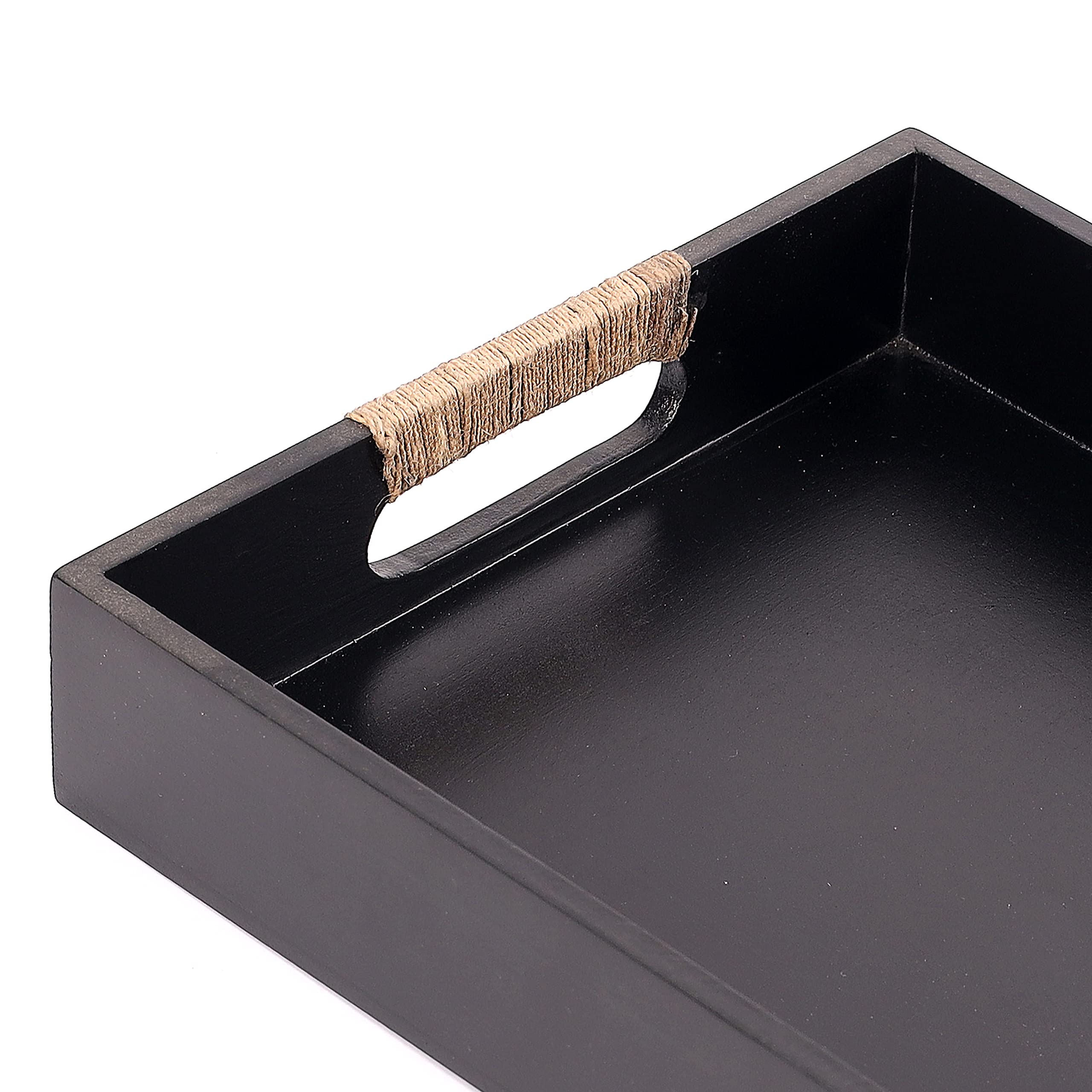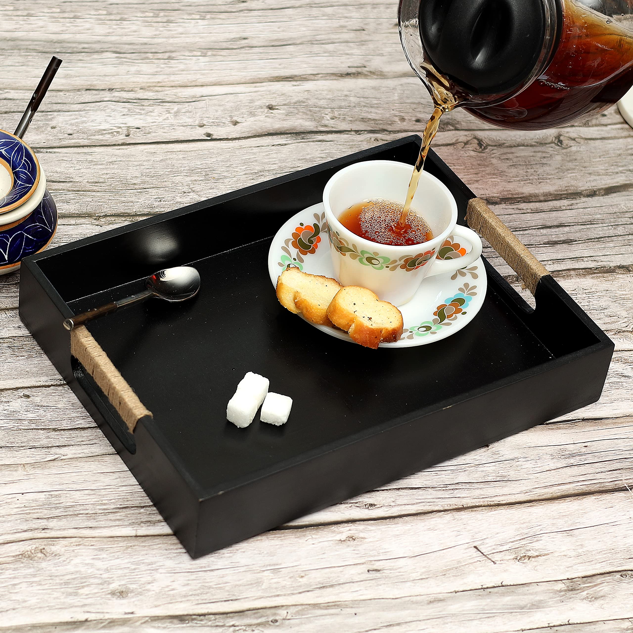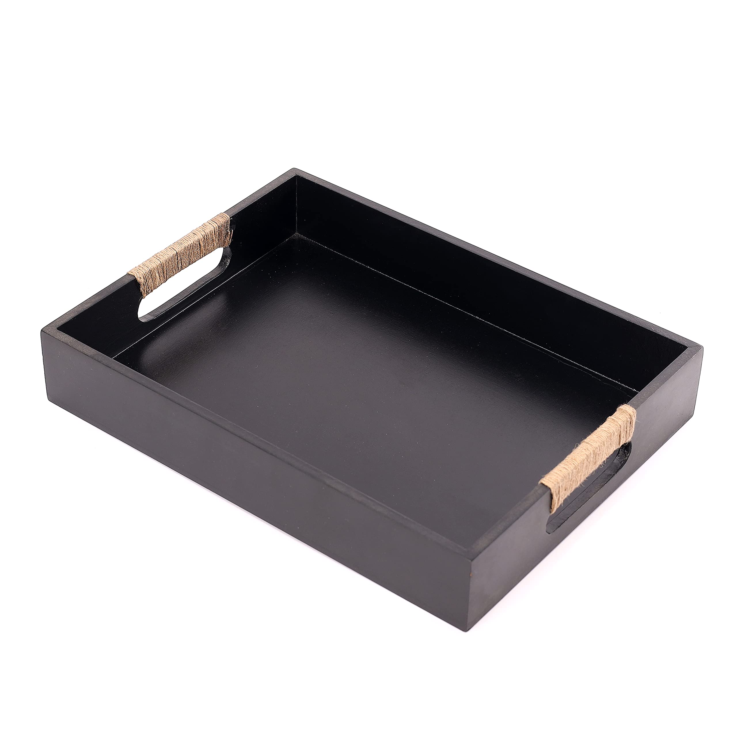 SAHARANPUR HANDICRAFTS Black Deco Painted Multipurpose Tray in MDF | Serving Tray for Home & Dining Table | Multipurpose Tray | Water & Heat Resistant Durable (Sutli Black 12x8)