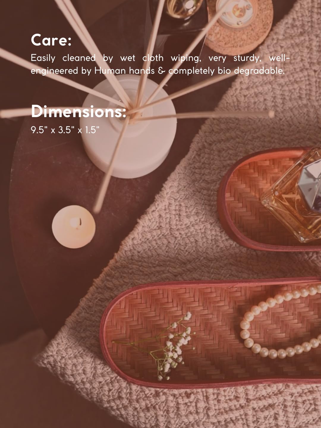 Material: The tray is handwoven by rural women and young people in West Bengal using locally grown bamboo which is the strongest material known to organic science. This enables them support themselves financially. The bamboo tray is absolutely safe to use