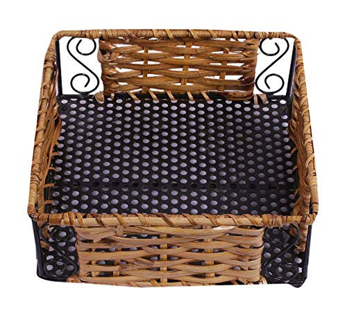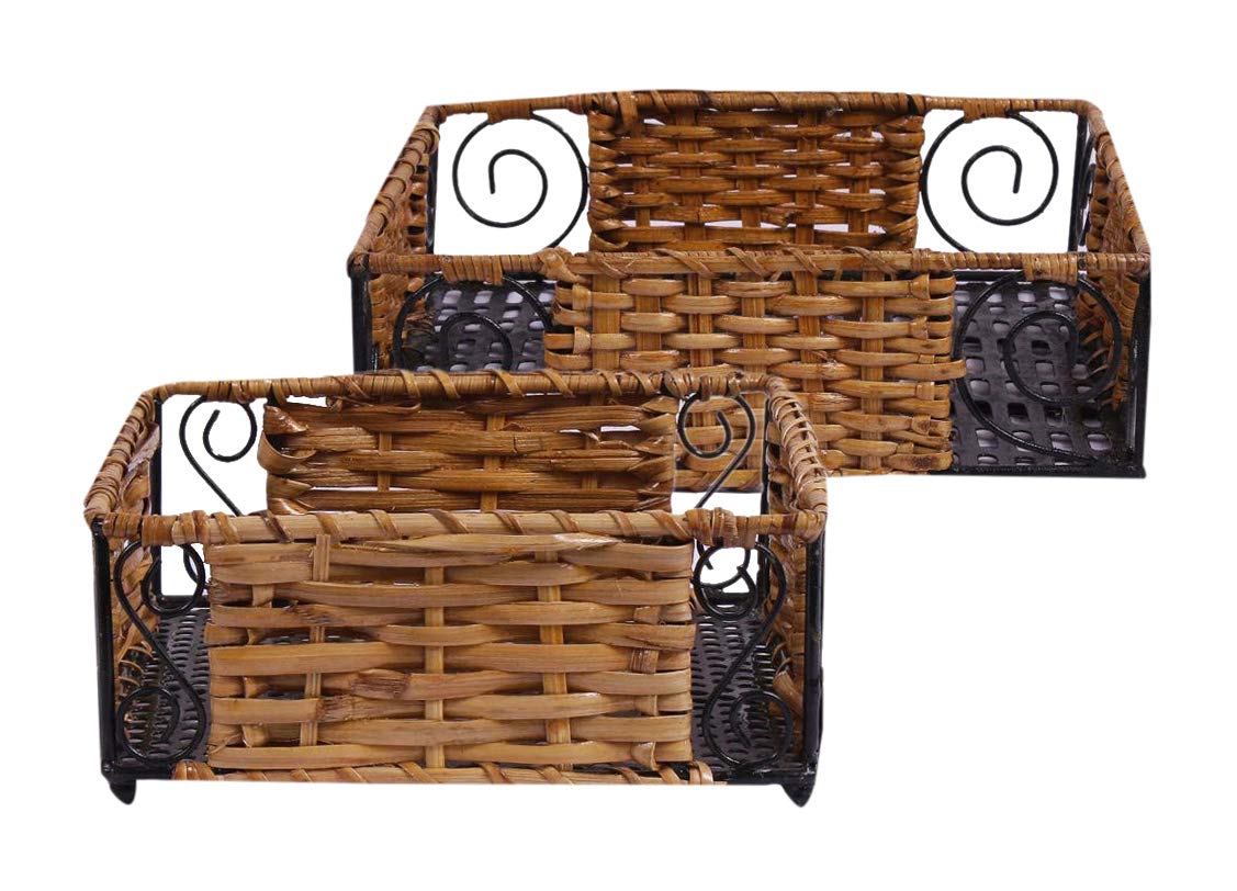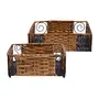 SIKKI CRAFT Wicker Handmade Square Tray for Dressing Table Dinning Table Storing Bathroom Towels Set of 2 (9" x 4.5" x2.5" 11" x 5.5" x 2.5) Beige