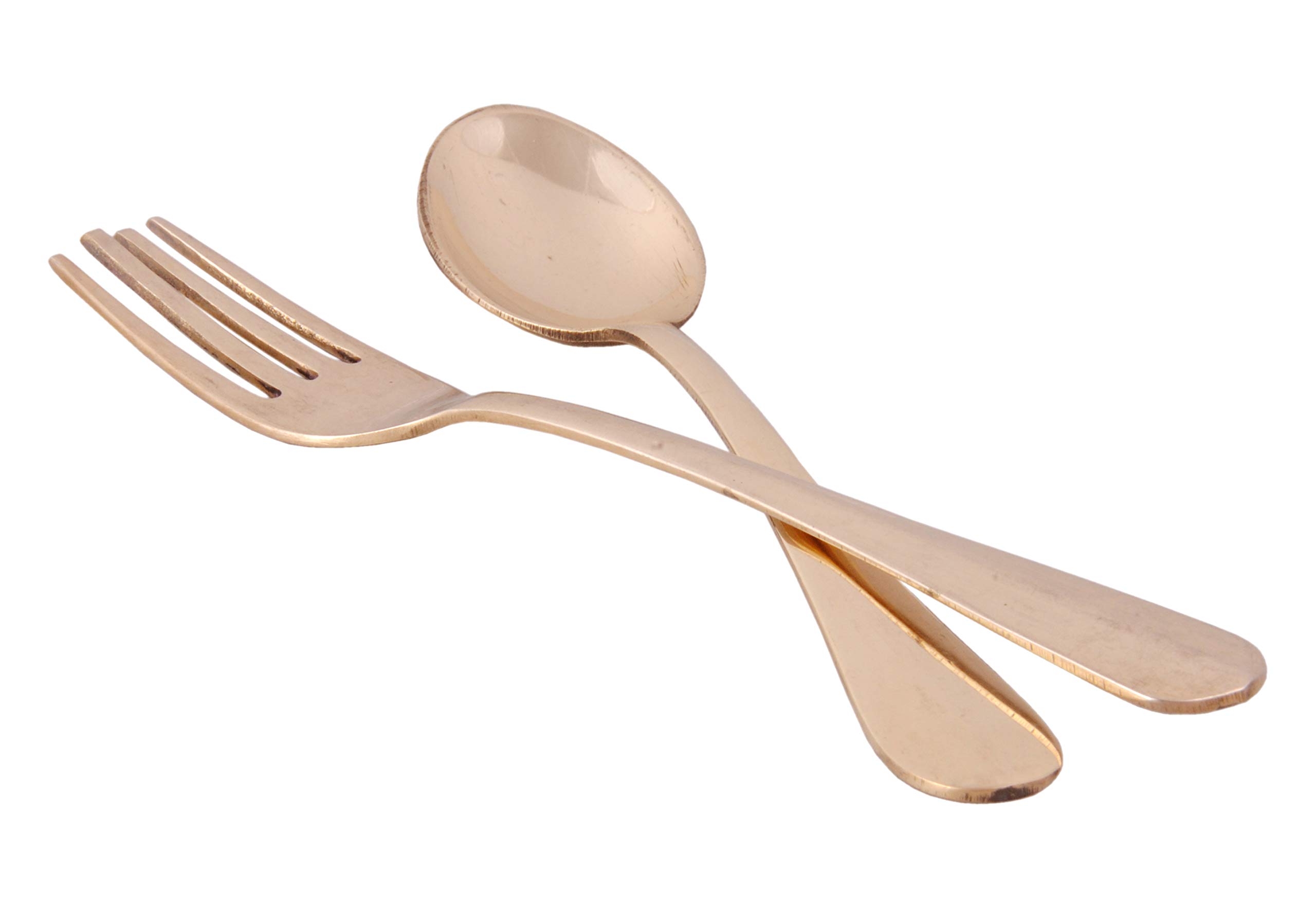 Shiv Shakti Arts Pure Brass Fork & Spoon Set - Tableware Cutlery Set (Heavy Gauge - 7.2" Inch)