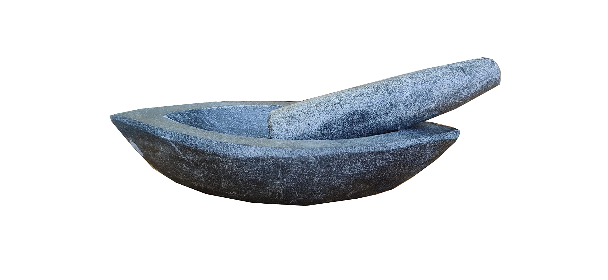 RAJASTHANI PUPPETS Black Narmada Stone Boat Shape Medicine Herb Crusher/Imam Dasta/Mortar and Pestle Set/Ohkli Musal/Kharal/Idi Kallu/Khal Musal/Khalbatta/Spice Grinder (7 Inches)
