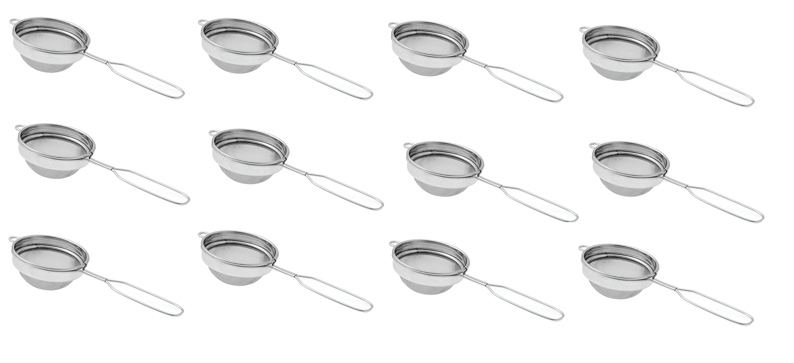 High quality stainless steel wire handle tea and coffee strainer. It includes 12 tea and coffee strainers diameter size 9.5 cm each