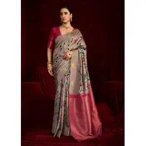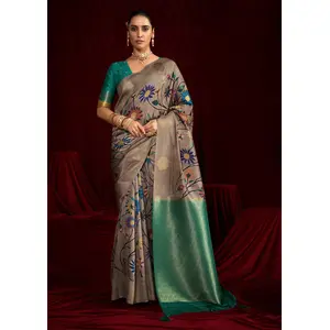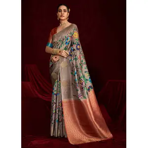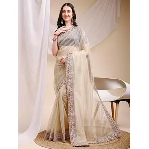 Beige Color Space Silk Fabric Ethnic...