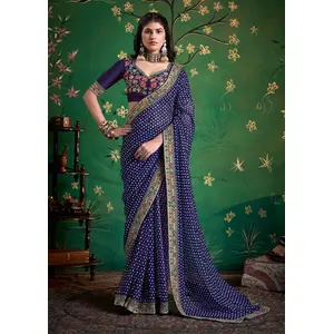 Navy Blue Color Faux Fabric Festive...