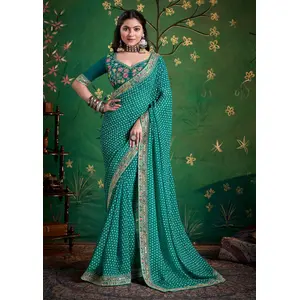 Teal Color Soft Silk Fabric Graceful...