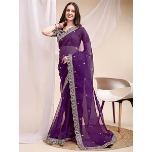 Purple Color Organza Fabric Ethnic...