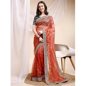 Rust Color Soft Silk Fabric Graceful...