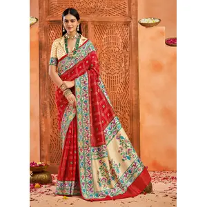 Red Color Soft Silk Fabric Graceful...