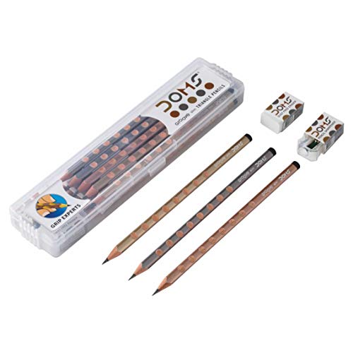 DOMS Groove Slim Triangle Pencils 10 Pencils + Plastic Box + Eraser & Sharpner