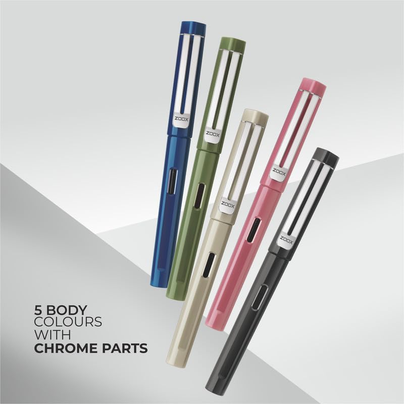 • Package Includes: Flair Zoox A9 Chrome Finish Fountain Pen Blue Ink Pack Of 3 - Body Color May Vary