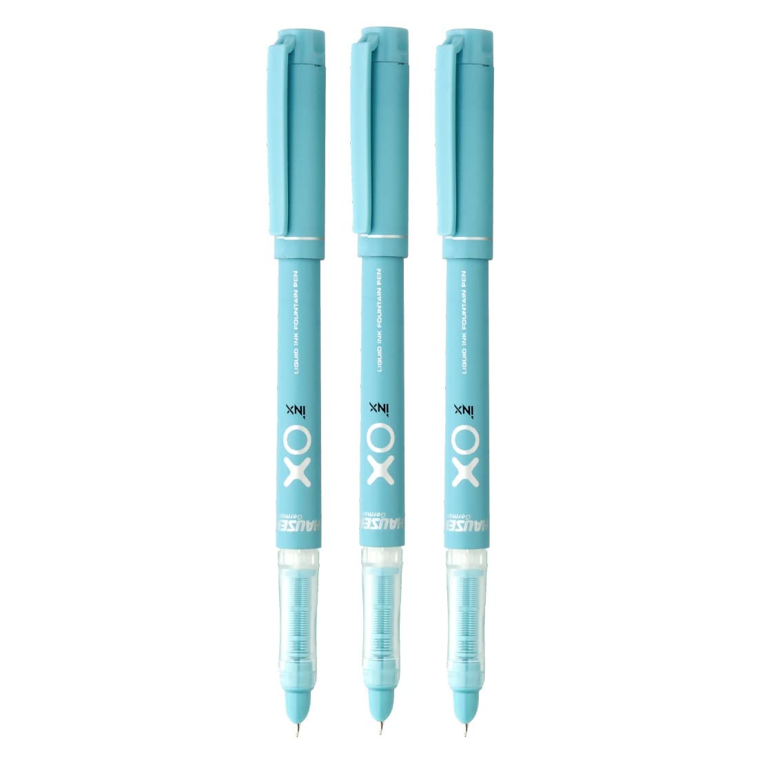 Hauser Germany Inx Xo Liquid Ink Fountain Pen Blister Pack | Smooth Round Nib With Iridium Tip | Free 4 Pieces X-Large Jumbo Cartridges | Unique Liquid Ink Sysyem | Blue Ink, Pack Of 3