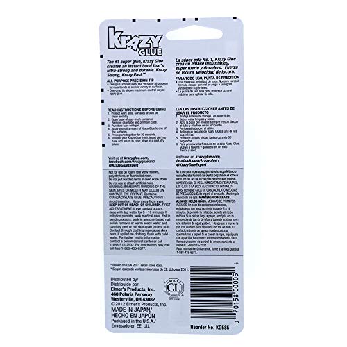 ALL PURPOSE: Elmer's Krazy Glue works great on wood rubber glass ceramic plastic school projects household repairs and more!